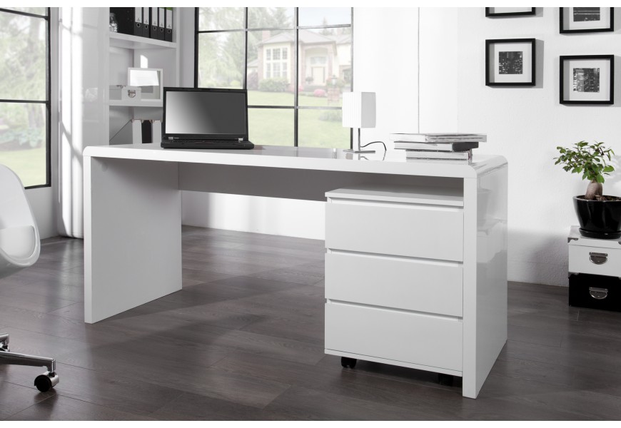 Luxusný moderný dizajnový kancelársky stôl Fast Trade biely vo vysokom lesku Vás zaručene presvedčí svojim jedinečným čistým dizajnom. Nadčasový minimalizmus sa skvele hodí do moderného prostredia. Poskytne Vám nerušivé pracovné prostredie. Je vyrobený z vysoko kvalitnej lakovanej MDF. Veľkosť: 160 cm x 75 cm x 60 cm (ŠxVxH). Stolík sa dodáva bez zásuvkovej skrinky.