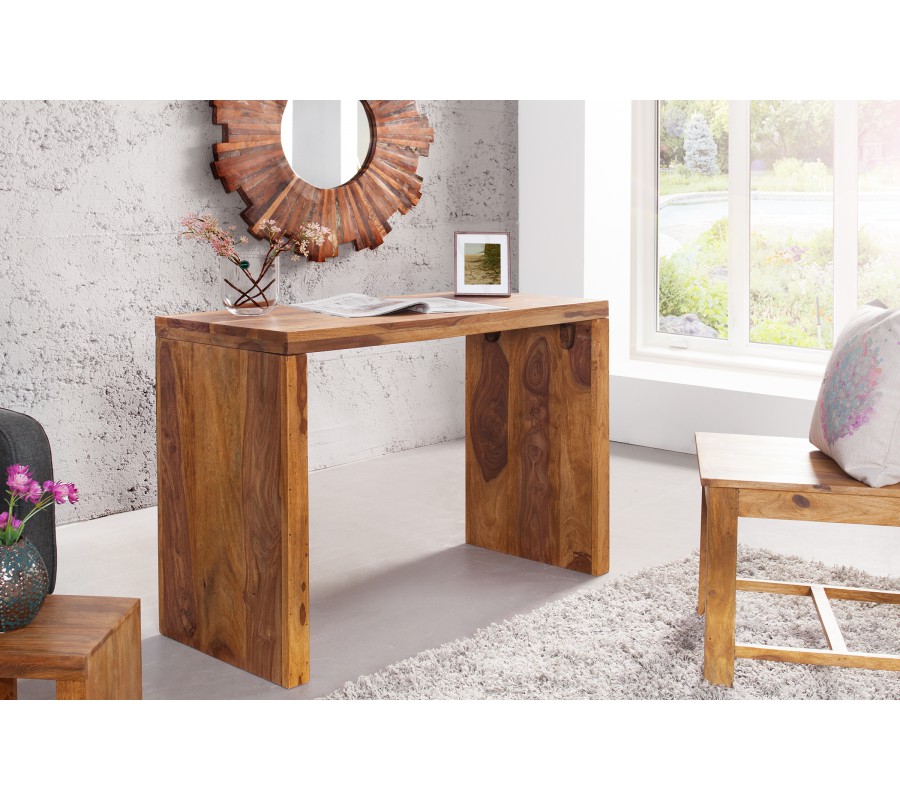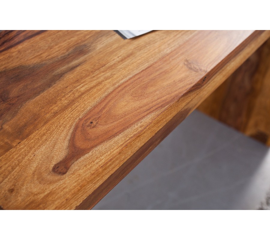 Masívny hnedý písací stôl Makassar zo sheeshamového dreva predstavuje nadčasový kus nábytku v koloniálnom štýle, ktorý vyniká svojou jednoduchosťou a prírodnou eleganciou. Vyrobený je z pravého sheeshamového dreva, ktoré sa vyznačuje bohatou kresbou, farebnými prechodmi a nepravidelnou štruktúrou, vďaka čomu má každý kus jedinečný vzhľad. Lakovaný povrch zvýrazňuje štruktúru a zároveň poskytuje ochranu dreva.