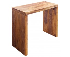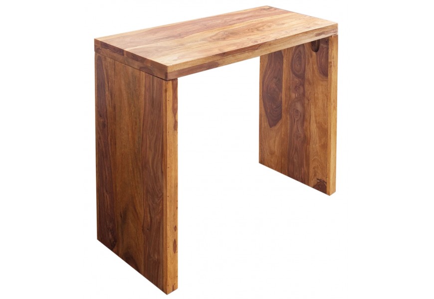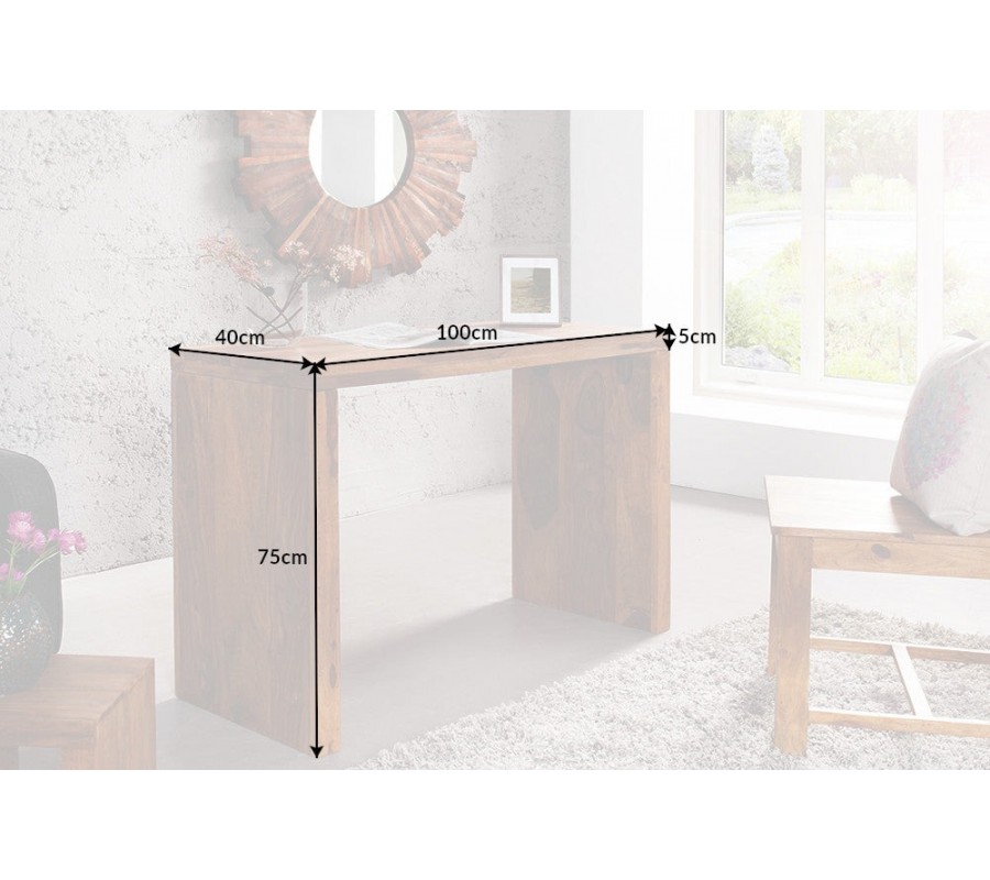 Koloniálny obdĺžnikový hnedý písací stôl Makassar z masívneho sheeshamového dreva s lakovaným povrchom a výraznou kresbou 100 cm