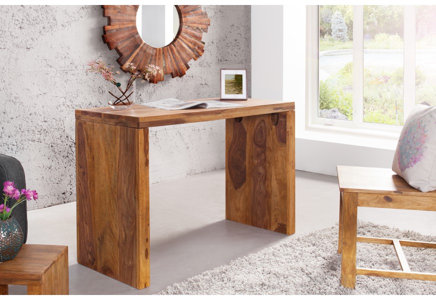 Masívny hnedý písací stôl Makassar zo sheeshamového dreva predstavuje nadčasový kus nábytku v koloniálnom štýle, ktorý vyniká svojou jednoduchosťou a prírodnou eleganciou. Vyrobený je z pravého sheeshamového dreva, ktoré sa vyznačuje bohatou kresbou, farebnými prechodmi a nepravidelnou štruktúrou, vďaka čomu má každý kus jedinečný vzhľad. Lakovaný povrch zvýrazňuje štruktúru a zároveň poskytuje ochranu dreva.
