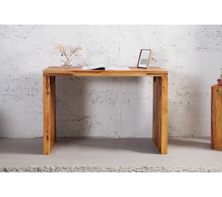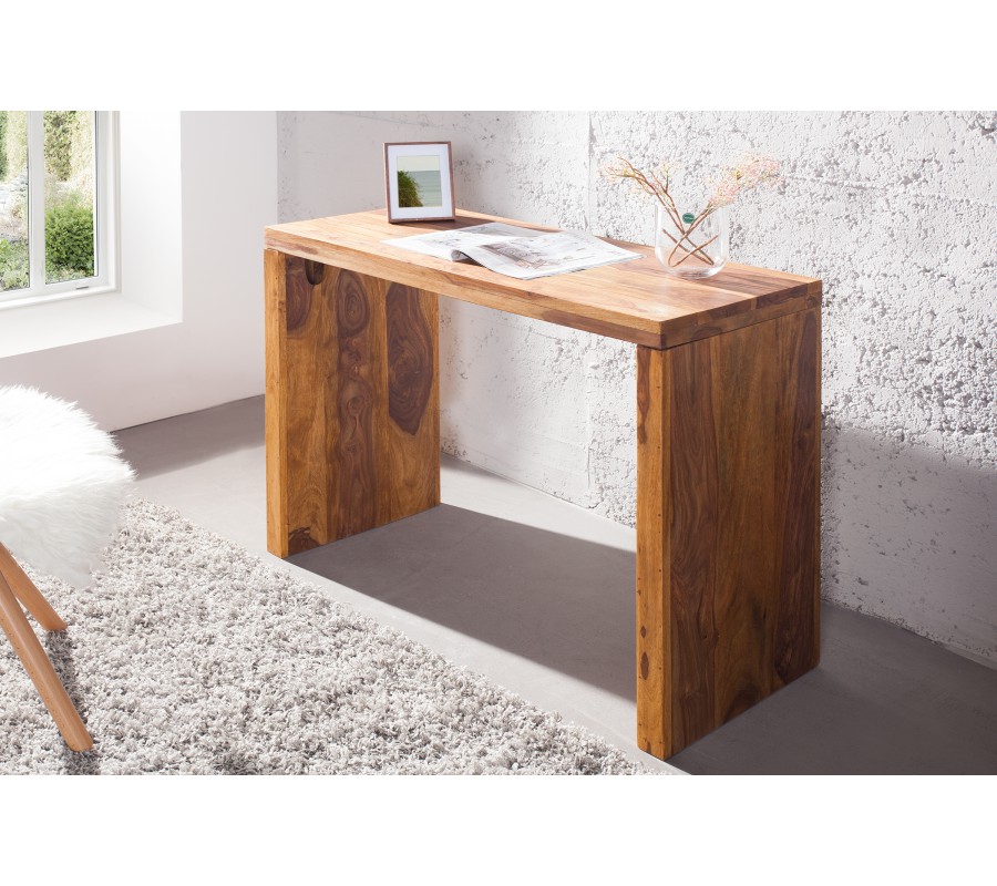 Koloniálny obdĺžnikový hnedý písací stôl Makassar z masívneho sheeshamového dreva s lakovaným povrchom a výraznou kresbou 100 cm