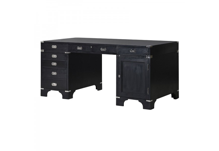 Dizajnový písací stôl v štýle art-deco z kolekcie Wielton Nero zaručene oceníte nielen v domácnostiach zariadených práve v tomto štýle ale i v iných interiéroch, najmä vďaka svojím príjemným líniám tento stôl totiž zapadne kamkoľvek. Kombinácia chrómových prvkov a čierneho masívneho dreva pôsobí veľmi vkusne a stôl Vás zaručene poteší i úložným priestorom, ktorý Vám ponúka v podobe zásuviek a jednodverovej skrinky.