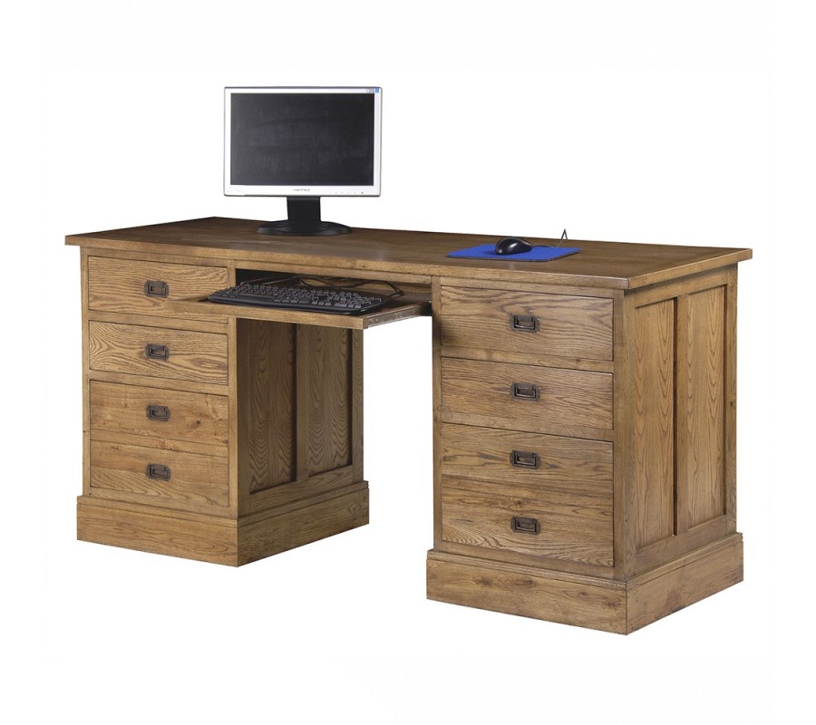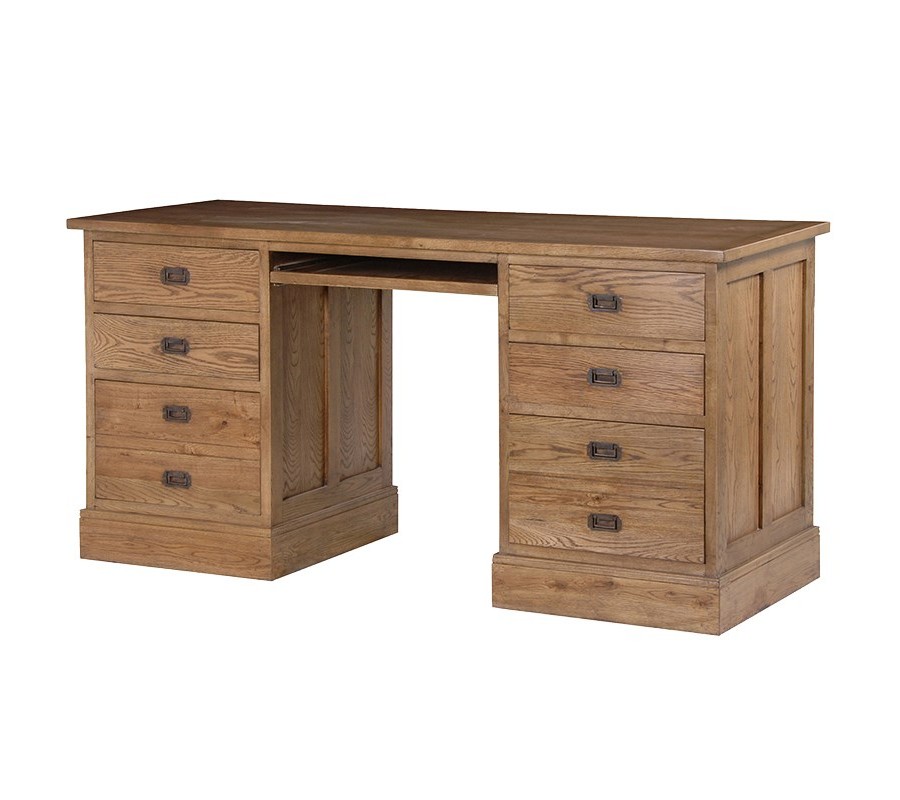 Vidiecky písací stôl Ondine z dubového masívu s ôsmimi zásuvkami svetlo hnedý 163cm