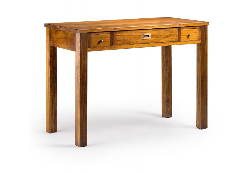 Jedinečný písací stolík Star je elegantným kúskom, ktorý vynikne v klasicky i modernejšie ladených priestoroch. Je vyrobený z kvalitného masívneho dreva mindi, ktoré zabezpečuje dlhodobú trvácnosť a nádherný luxusný vzhľad. Na povrchu tiež možno vidieť prirodzenú štruktúru dreva. Písací stolík disponuje vyklápacím mechanizmom s menším sekretárom a viacerými menšími zásuvkami, vďaka ktorým si všetky pracovné pomôcky a dokumenty môžete prehľadne usporiadať. Celodrevený dizajn je doplnený štýlovými kovovými úchytmi. Písací stolík Star poľahky zapadne do každej pracovne, a to najmä vďaka svojmu jednoduchému vzhľadu a unvierzálnej hnedej farbe. Pre dokonalý dojem odporúčame tiež kombináciu s ďalšími kúskami z našej kolekcie Star.