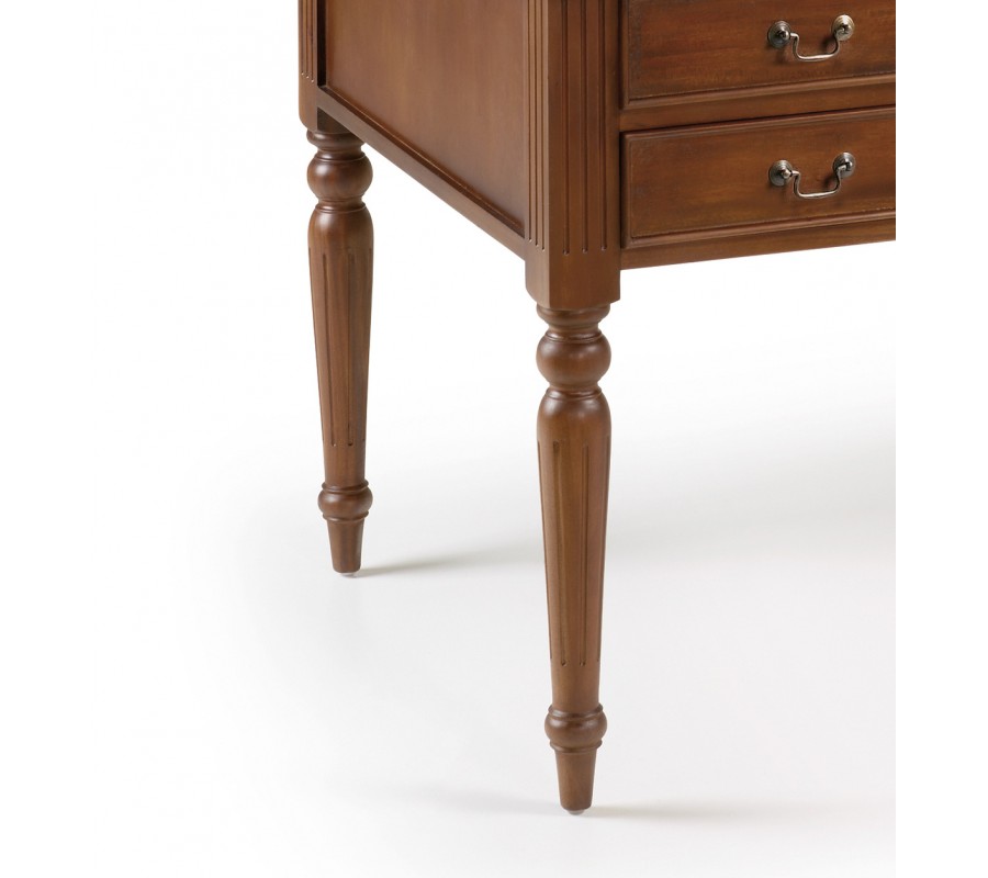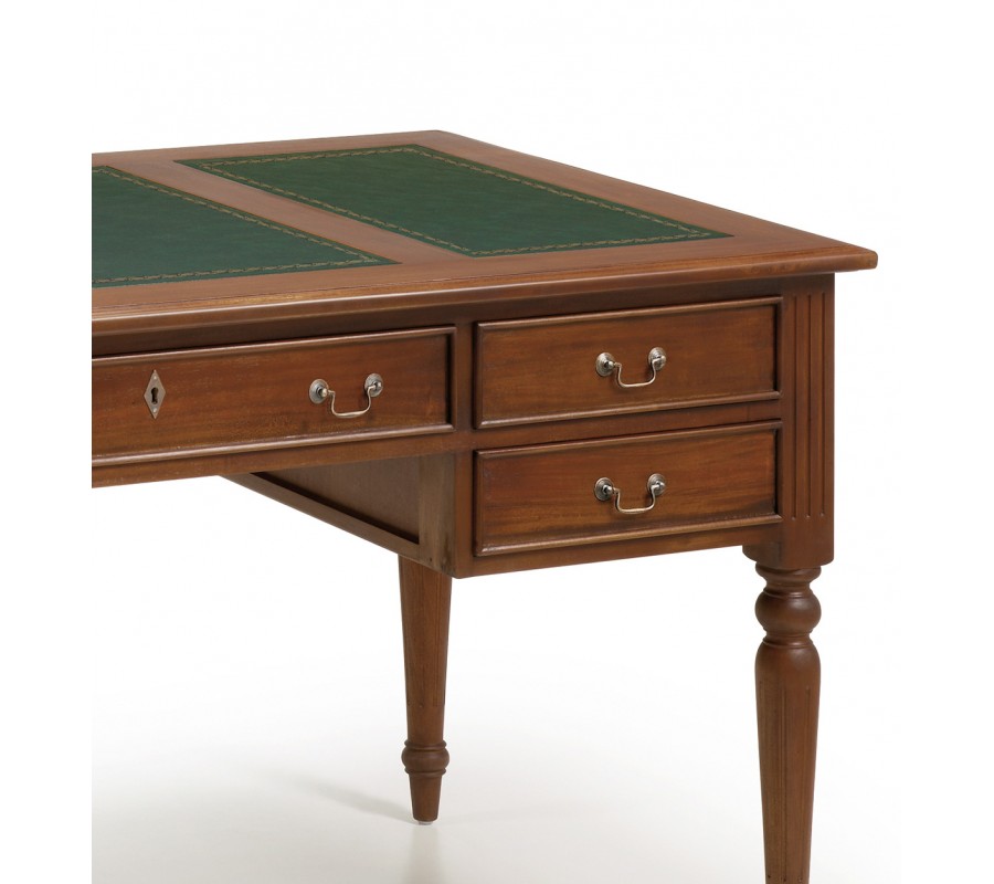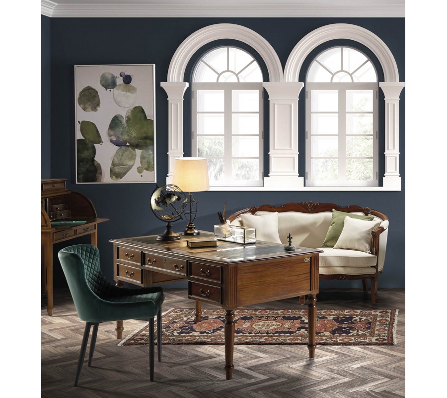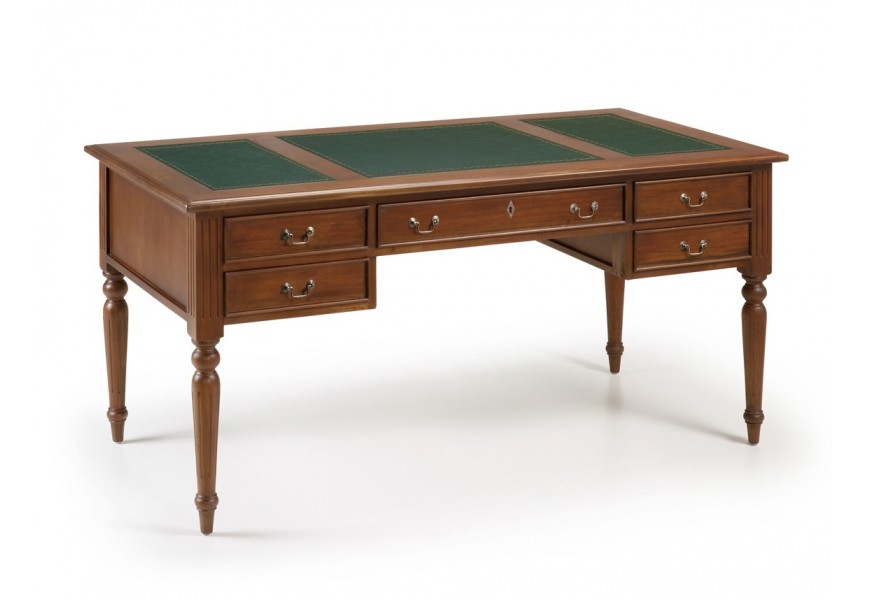 Pre všetkých milovníkov vintage či koloniálneho štýlu, ktorý si túžia svoju pracovňu doplniť o jedinečný kúsok, prinášame luxusný písací stolík M-Vintage! Tento jedinečný kúsok z rovnomennej kolekcie je vyrobený z kvalitného masívneho mahagónového dreva s príjemnou hnedou povrchovou úpravou, ktorá vynikne v svetlých i tmavých priestoroch. Okrem plochy na písanie disponuje piatimi praktickými zásuvkami vhodnými na uschovanie všetkých kancelárskych potrieb. Luxusná povrchová úprava a ornamentálne vyrezávanie na nožičkách k vám domov vnesú skutočný nádych starých čias a vytvoria skvelú atmosféru na prácu. Stolík M-Vintage odporúčame umeistniť najmä do vintage, koloniálne či rustikálne ladených interiérov.
