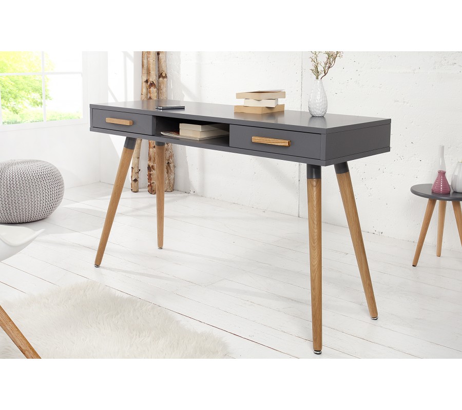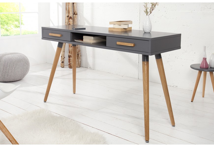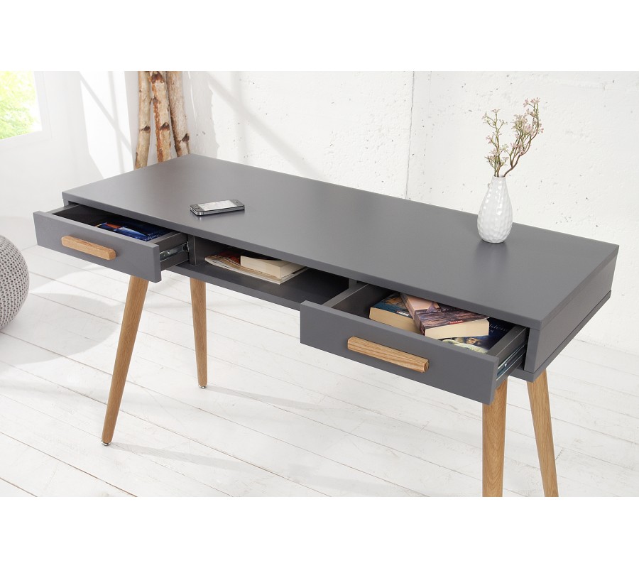 Dizajnový retro písací stôl Scandinavia v sivej farbe je krásnym kúskom nábytku, ktorý oceníte najmä pri zariaďovaní modernej domácnosti. Pre svoju jednoduchosť a eleganciu dokáže taký priestor rozžiariť a dodať mu osobitosť. Rozmery: 120 cm x 75 cm x 45 cm (ŠxVxH)