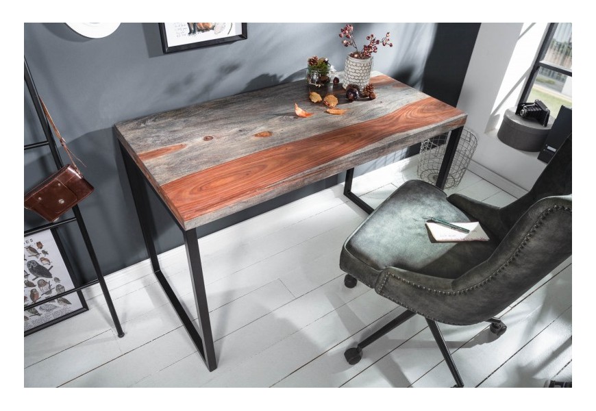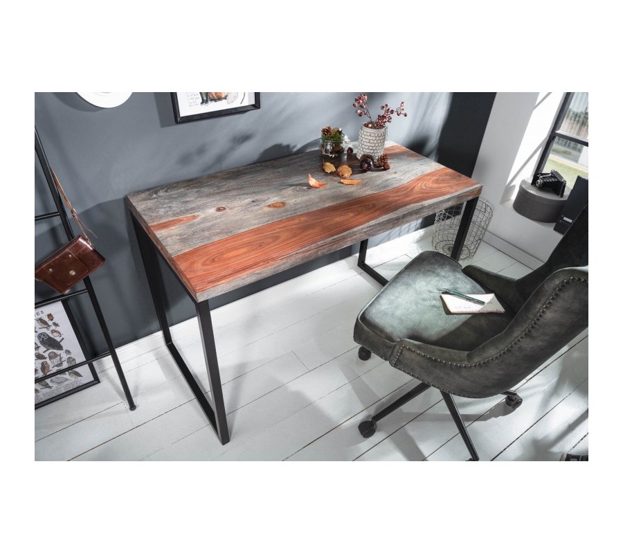 Industriálny písací stôl Elements z masívneho palisandrového dreva s čiernou kovovou konštrukciou 118cm