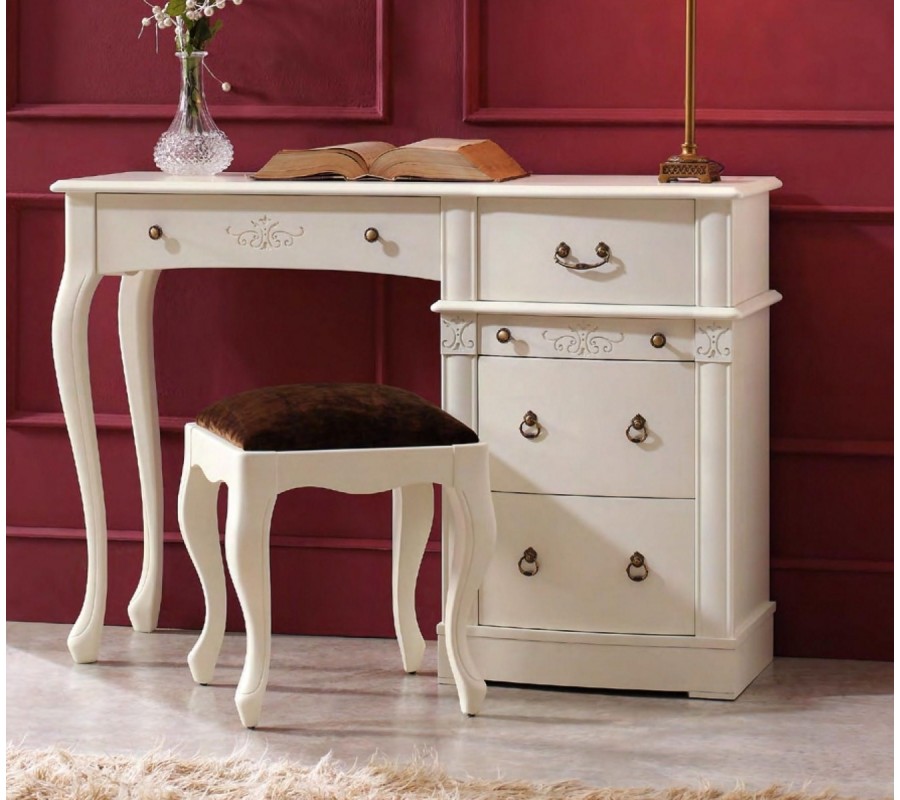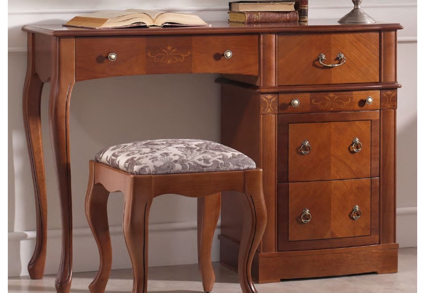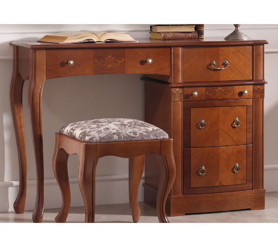 Luxusný písací stôl CASTILLA vyrobený z kvalitného masívu bukového dreva sa stane skutočne štýlovým a neprehliadnuteľným prvkom Vašej spálne či pracovne. Klasický, rustikálny štýl v kombinácii s prvotriednym spracovaním robí z písacieho stola CASTILLA naozaj trvácny a nadčasový kus. Plusom je taktiež jeho veľké množstvo úložného priestoru. Základná konštrukcia z bukového masívu je vo farebnej variante Čerešňa a Orech doplnená o ozdobné prvky vytvorené vkladaním drobných častí z dreva odlišného odtieňa do povrchu (tzv. technikou marketérie). Rovnako ako všetok nábytok kolekcie CASTILLA, je možné aj tento kúsok vyhotoviť v štyroch farebných prevedeniach. Produkt na fotografií je vo farebnom prevedení orech.