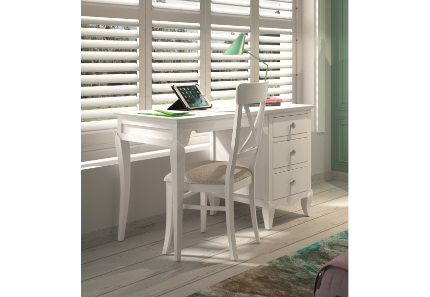Luxusný masívny písací stolík BASILEA je predstaviteľom kvalitného, nadčasového nábytku s vyrezávanými, rustikálnymi prvkami. Stôl ponúka praktický úložný priestor v podobe troch zásuviek s jednoduchými guľatými úchytkami. V prípade, ak požadujete produkt vo viacfarebnom prevedení (tak ako môže byť zobrazené na obrázku), prosím špecifikujte Vašu požiadavku podľa vzorkovníka dreva do poznámky objednávky pri jej potvrdení alebo nás kontaktujte.