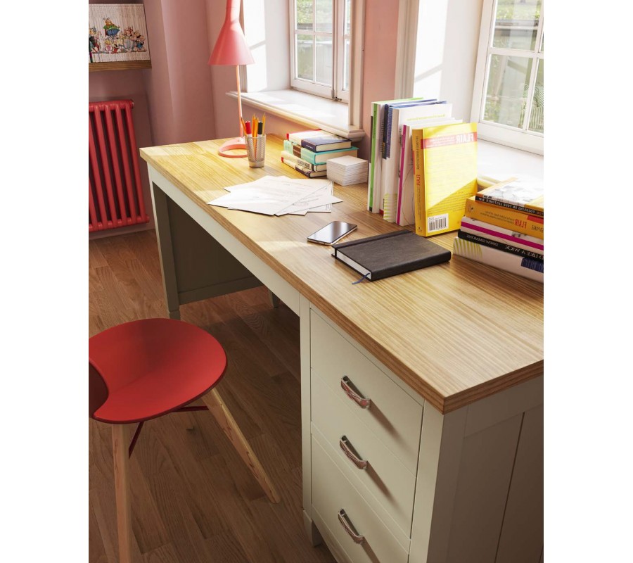 Luxusný písací stôl Amberes prinesie do domácej pracovne či detskej izby moderný dizajn s nádychom útulného vidieckeho štýlu. Z praktického hľadiska vám poskytne veľkorozmernú pracovnú plochy a štedrý úložný priestor.