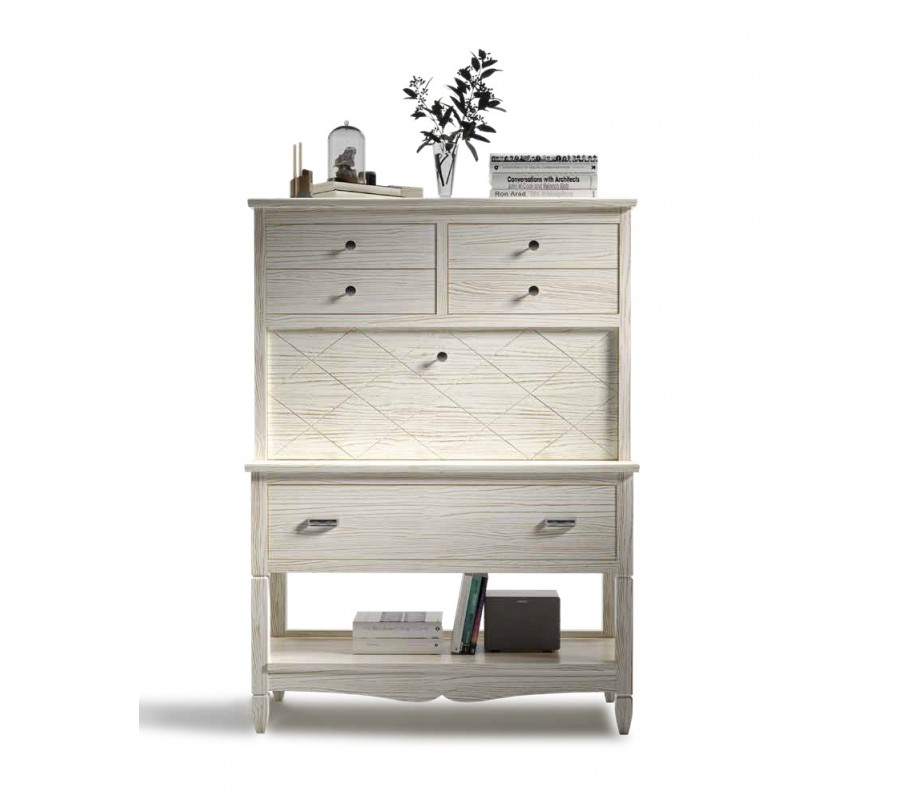 Písací stôl Amberes je skvelým riešením do domácich pracovných kútikov či detských izieb. Vďaka svojej výške je naplno využitý potenciál úložného priestoru a po ukončení práce sa písací stôl zmení na dizajnový nábytok. Môžete ho skombinovať s vyrezávanými kúskami vo vidieckom štýle, no hodí sa aj do moderných priestorov, ako ako štýlový akcent. Pre dokonale zladený vizuál môžete pridať aj ďalšie luxusné modely z rovnakej kolekcie Amberes.