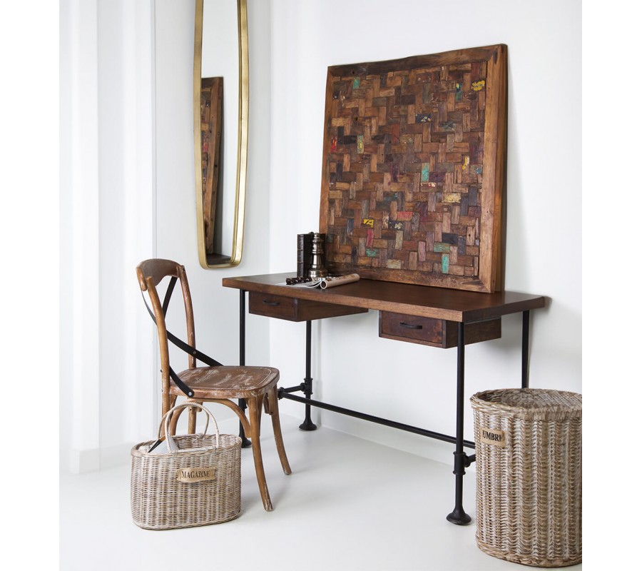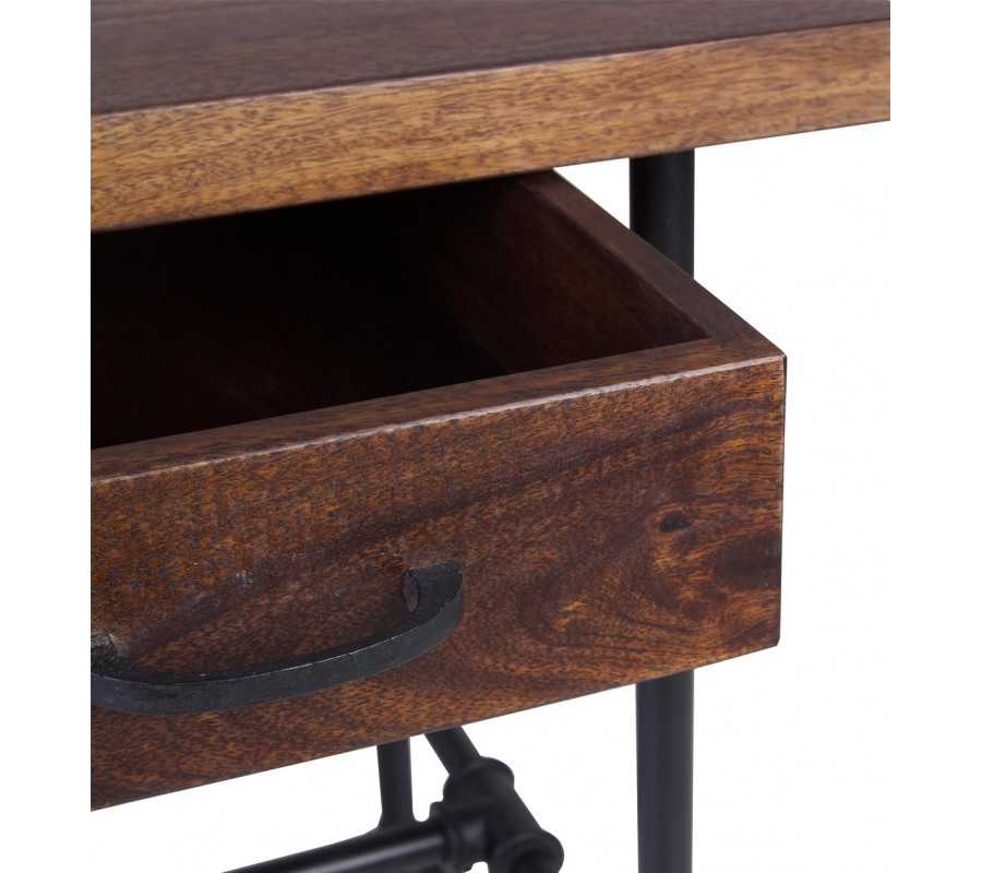 Jedinečný pracovný stôl z kolekcie industriálneho nábytku Hierro je dokonalým predstaviteľom tohoto populárneho štýlu. Moderné domovy zaručene ocenia prítomnosť tohoto distingvovaného kúsku, v ktorom sa masívne mangové drevo snúbi s chladom kovových trubíc využitých pre konštrukciu. Ponúka vám taktiež úložný priestor v podobe dvoch praktických zásuviek, ktoré skvelo poslúžia na uskladnenie vašich dokumentov či kancelárskych potrieb. Stolík Hierro odporúčame kombinovať s industriálnymi doplnkami, masívnym nábytkom, či pre dokonalý efekt s ďalšími kúskami z našej rovnomennej kolekcie.