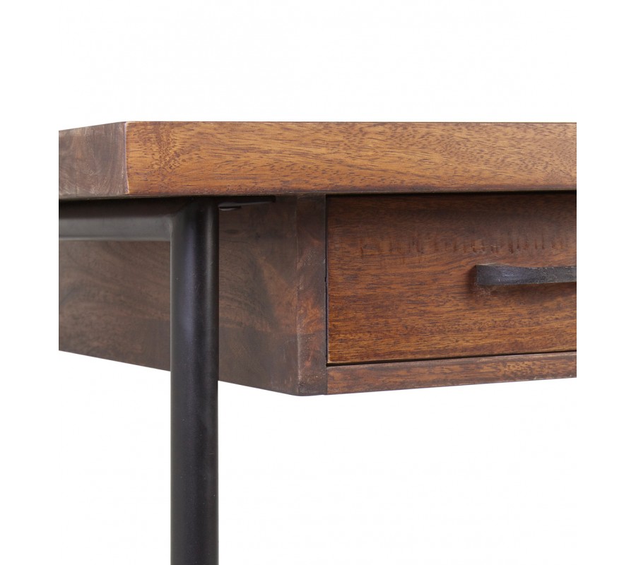Industriálny pracovný stôl HIERRO z masívneho mangového dreva s čiernou kovovou konštrukciou