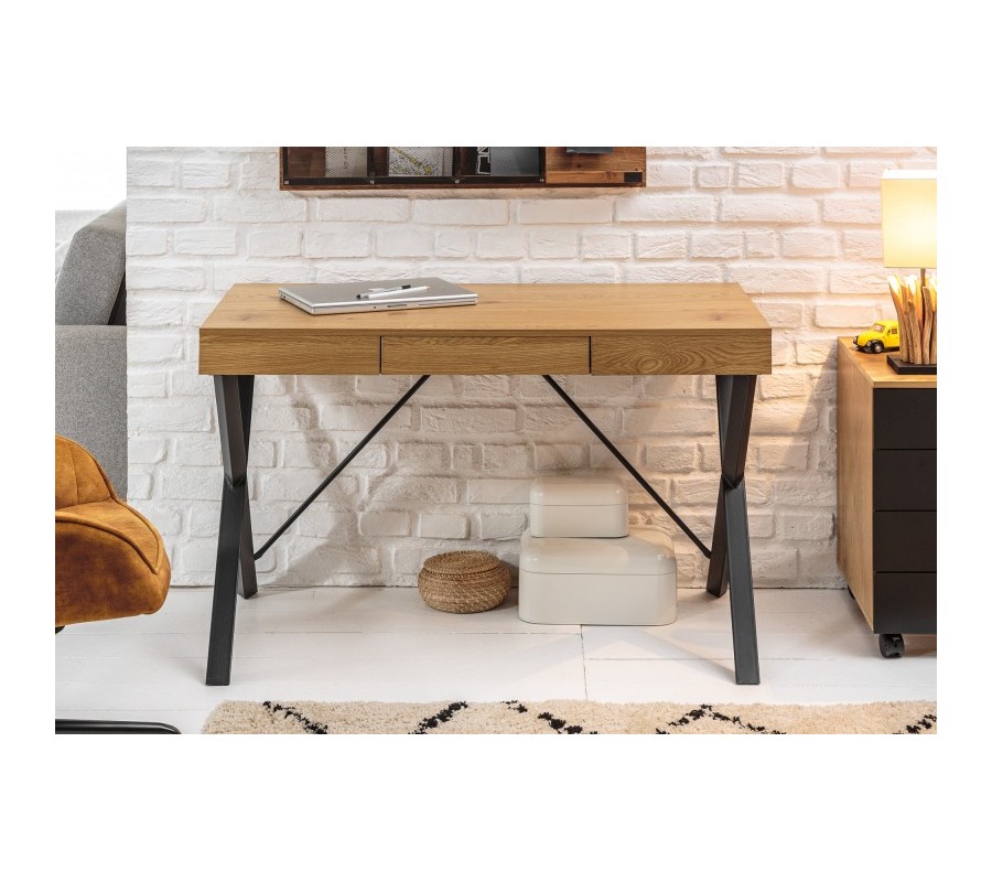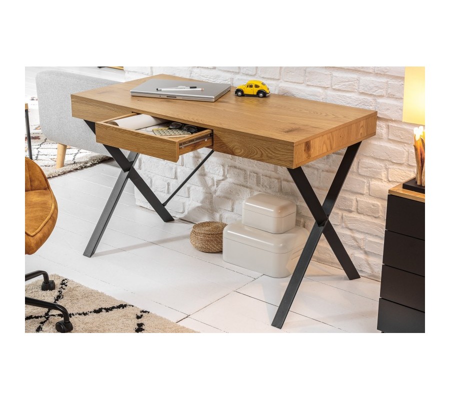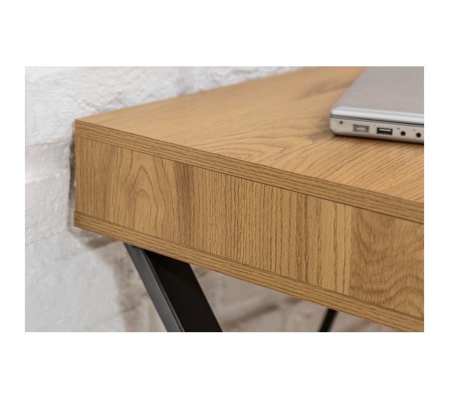 Dizajnový a nadčasový kancelársky stôl z kolekcie vkusného nábytku Westford sa stane štýlovým pomocníkom v nejednej modernej pracovni. Pracovný stolík Westford svojim minimalistickým vzhľadom nabáda k dômyselnej organizácií vášho pracovného prostredia a zároveň poskytuje úložný priestor v podobe jednej zásuvky. Príjemná kombinácia povrchovej dosky v hnedej farbe naturálneho dubu a čiernych chladných kovových nôh pôsobí naozaj distingvovane a príjemne. Pracovný stôl Westford odporúčame kombinovať s ďalším nábytkom v industriálnom štýle v prírodných odtieňoch, ako napríklad živé kvety v štýlových črepníkoch.