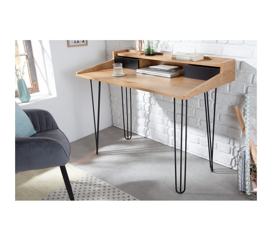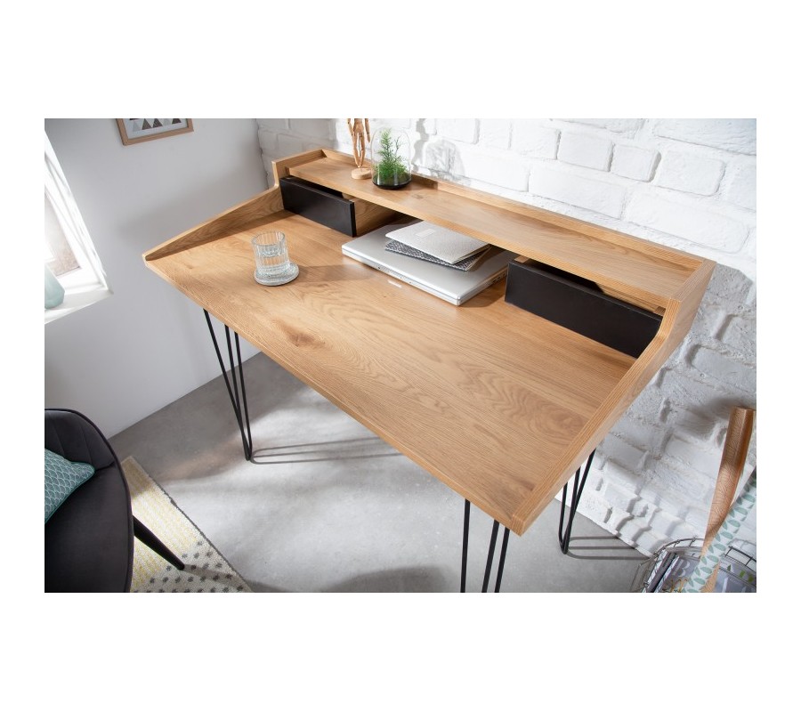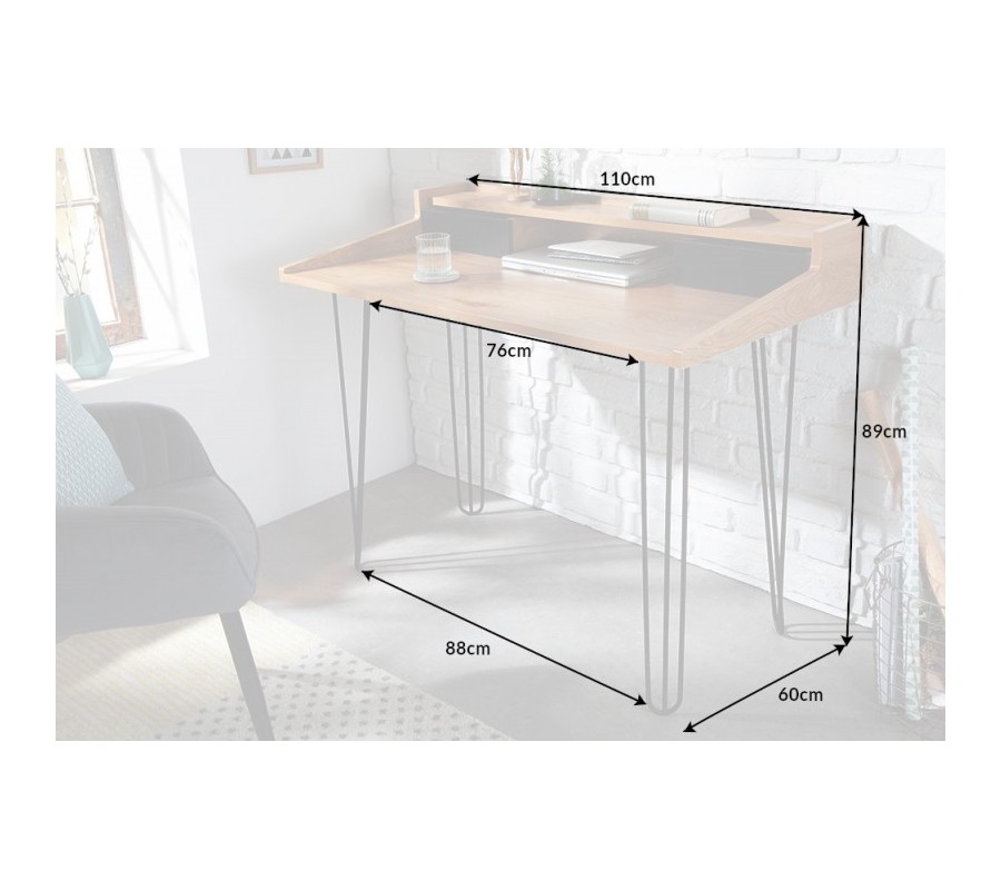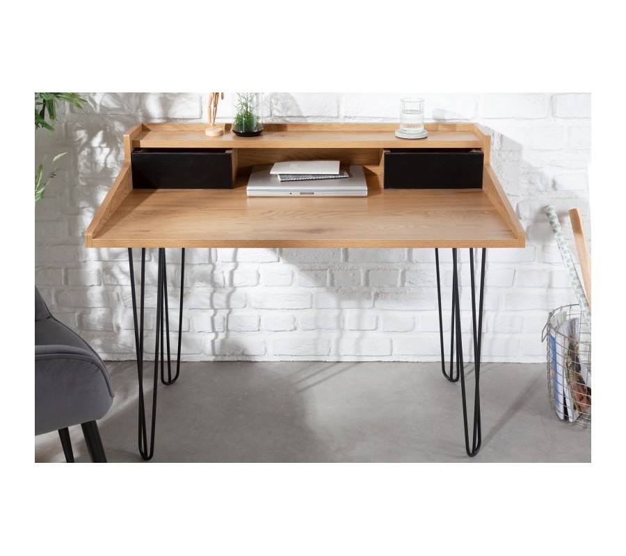 Škandinávsky písací stôl Linden s dvomi zásuvkami a poličkou 110cm