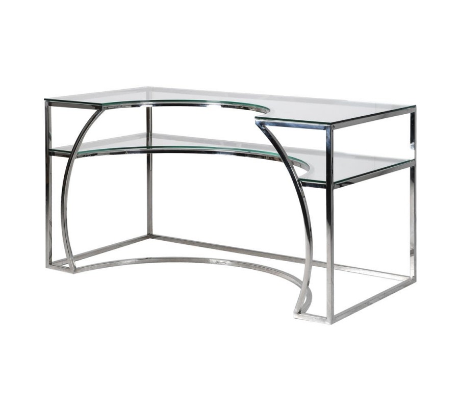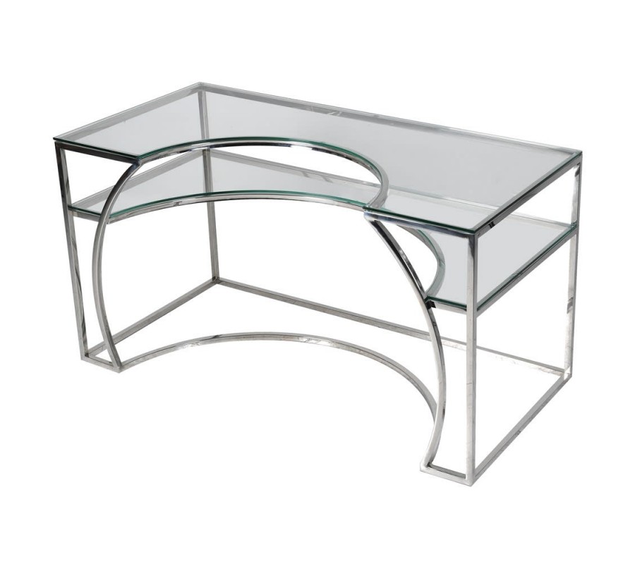 Art-deco atypický pracovný stôl s doskou zo skla a konštrukciou v striebornej farbe 140 cm