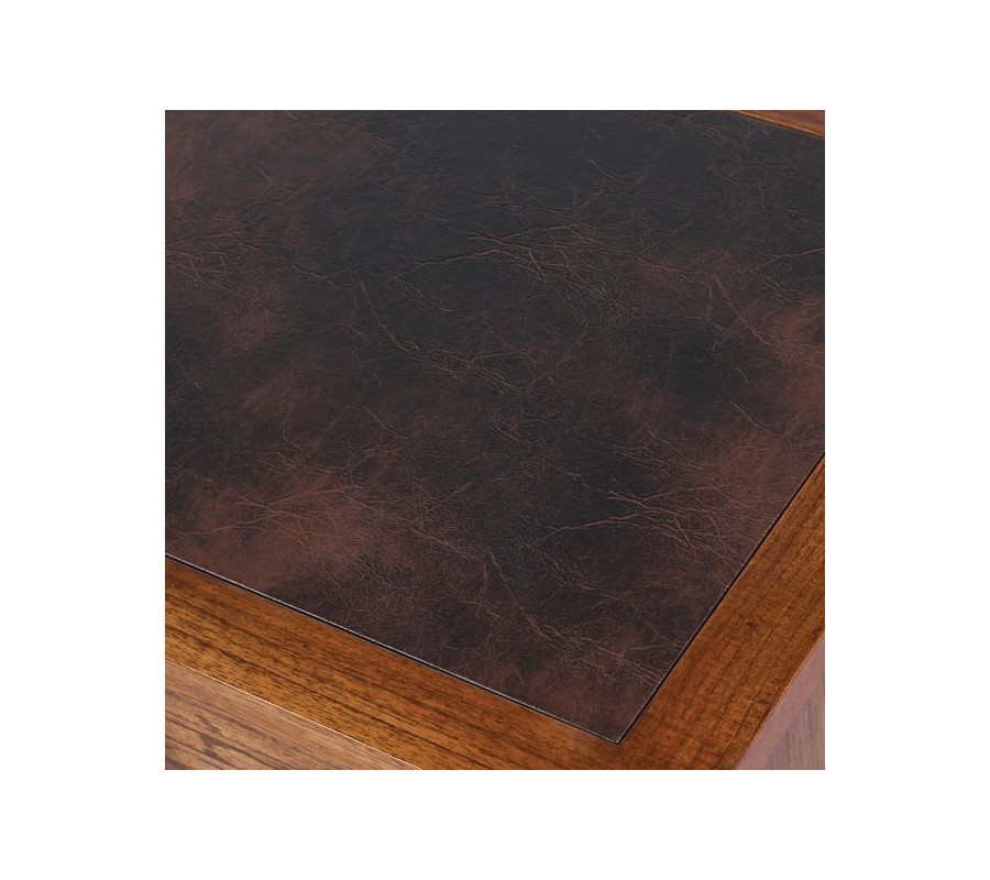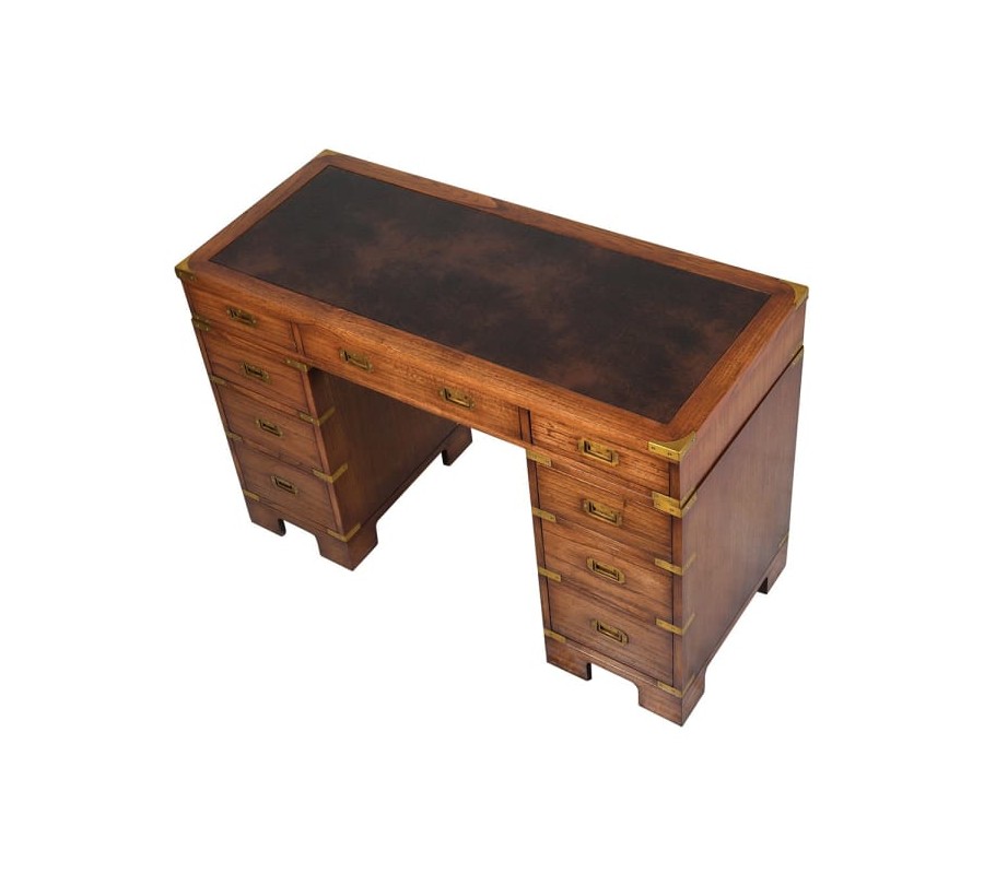 Luxusný koloniálny pracovný stôl z masívu DARK RICH s deviatimi zásuvkami a koženou pracovnou doskou 116cm