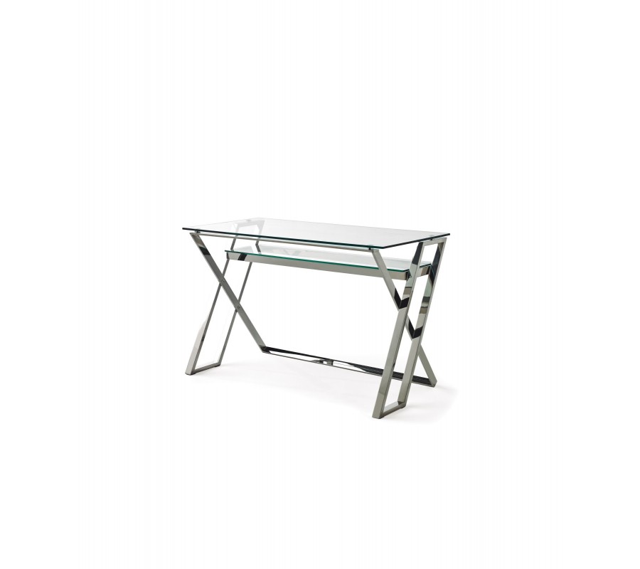 Sklenený písací stolík Aletta s poličkou so striebornými kovovými nožičkami 120cm