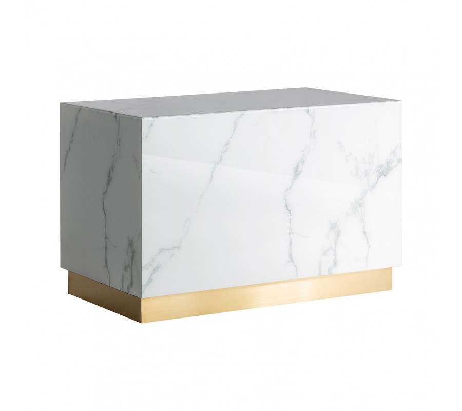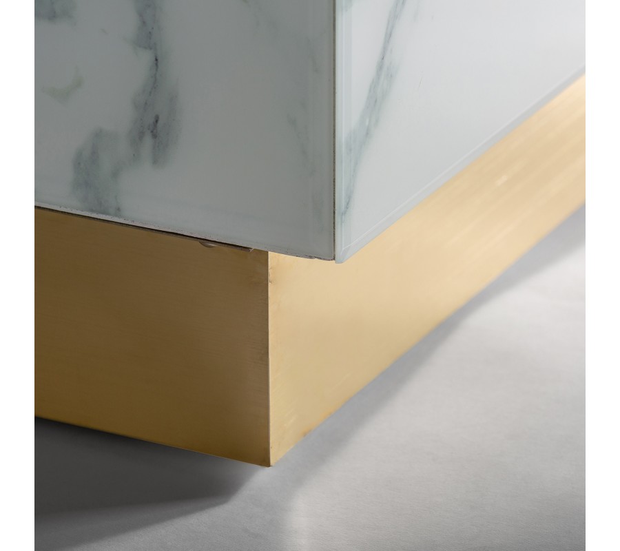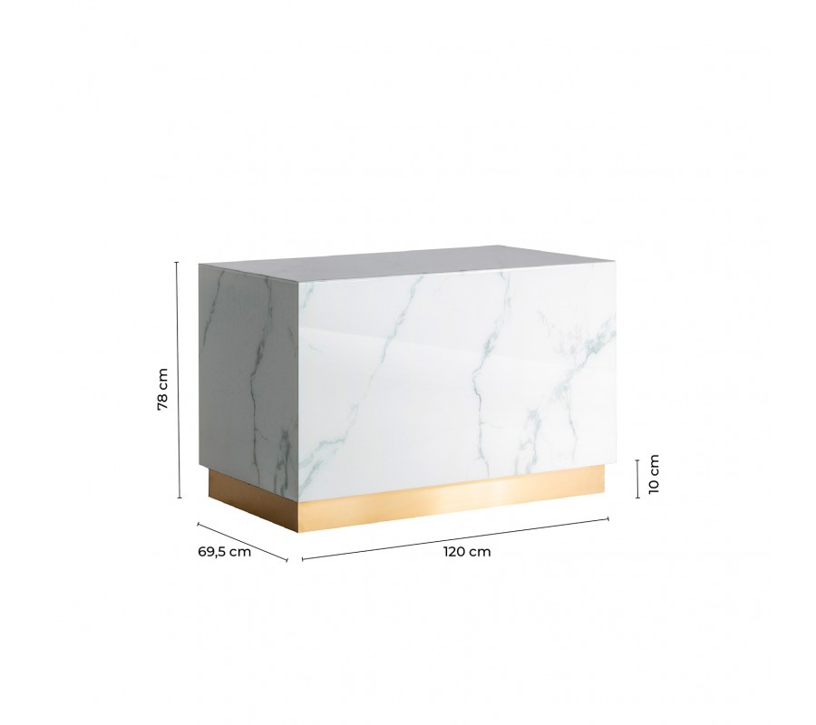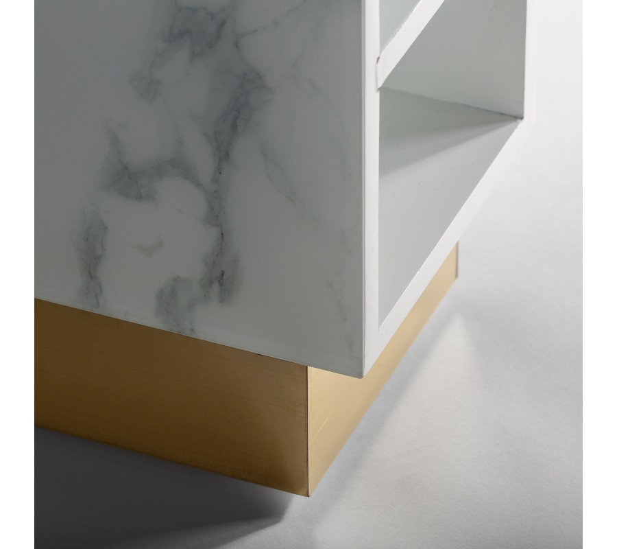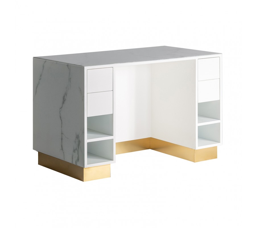 Art-deco moderný kancelársky stôl Moraira bielej farby s mramorovým efektom a zlatou podstavou 120cm