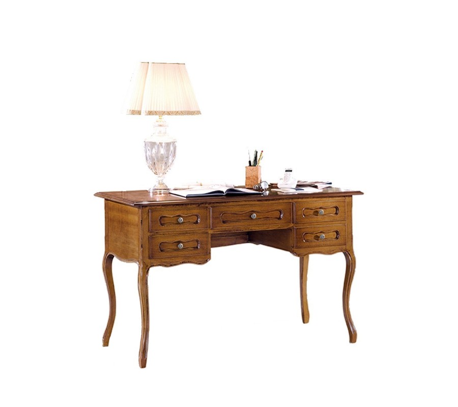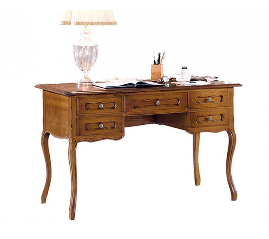 Luxusný rustikálny písací stolík Emociones z masívneho dreva s piatimi zásuvkami a vyrezávanými nožičkami 130cm