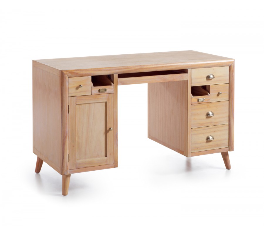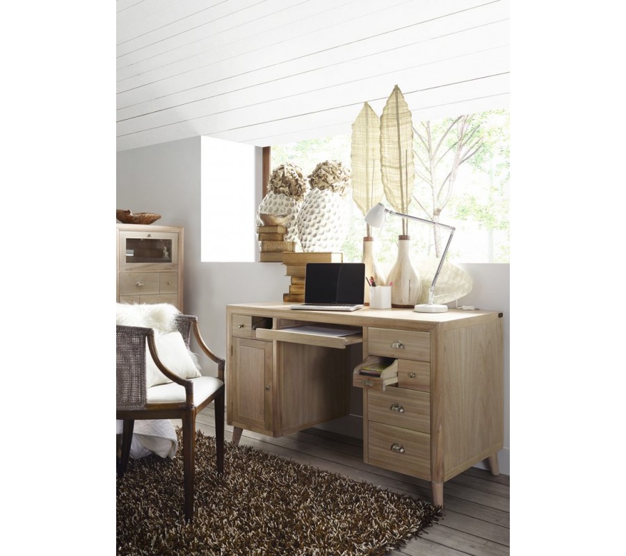 Jedinečný štýlový písací stôl z kolekcie BROMO. Kolekcia nábytku BROMO predstavuje retro štýl z koloniálneho masívneho dreva MINDI, nožičky nábytku pripomínajúce 60 roky so štýlovými úchytmi. Autentické otváranie dvierok a šuplíkov. Vhodný do kombinácie s farebnými stenami, alebo tapetami so vzormi.