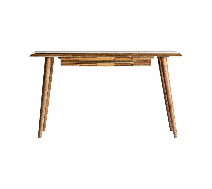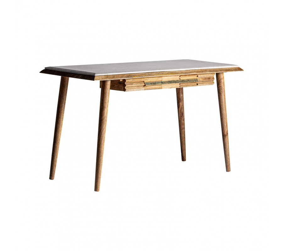 Art-deco písací stolík Plissé Nature z dreveného masívu v hnedej naturálnej farbe s mramorovou vrchnou doskou 135cm
