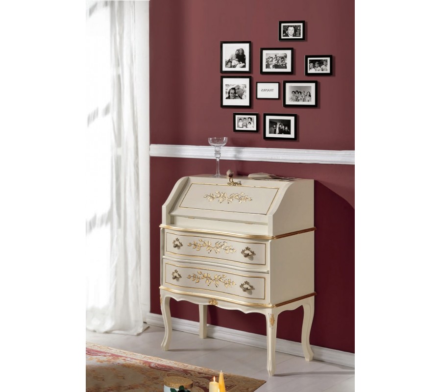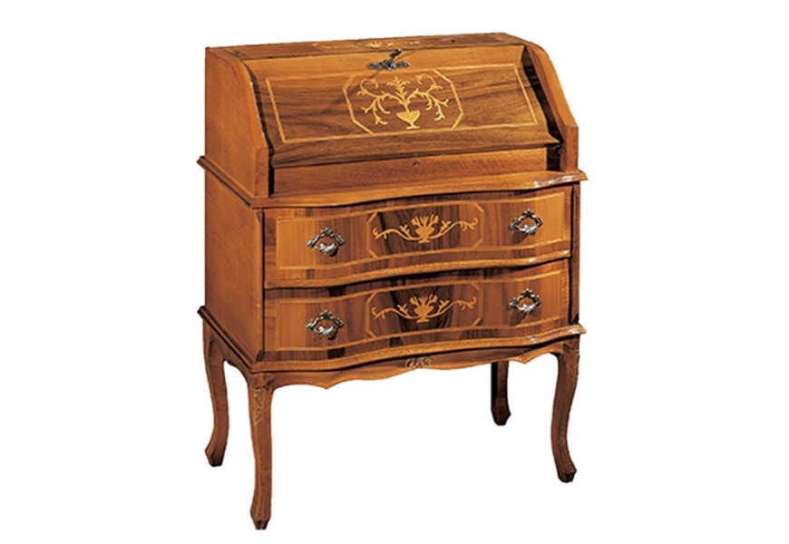 Máte doma luxusnú pracovňu ladenú v klasickom štýle, v ktorej ale chýba dominantný pracovný stolík? Naša kolekcia kvalitného talianskeho nábytku Clásica prináša niekoľko kúskov, z ktorých si zaručene vyberiete ten pravý! Pracovný stolík so sekretárom je vyrobený z kvalitného masívneho dreva, pričom jeho povrchová úprava je obohatená o bohaté ozdobné ornamenty vytvorené technikou intarzie. Disponuje dvomi praktickými zásuvkami a niekoľkými uzatvárateľnými poličkami s vyklápacou pracovnou doskou. Rustikálny vzhľad dopĺňajú aj ozdobné kovové úchyty a ručne vyrezávané prvky na nožičkách aj hranách stolíka. Vďaka možnosti výberu z viacerých možných farebných prevedení si môžete vytvoriť skutočne jedinečný a unikátny kúsok presne podľa vašich predstáv! V luxusných kanceláriách stolík Clásica vynikne najmä v kombinácii s koženým kreslom a ďalším nábytkom z masívneho dreva.
