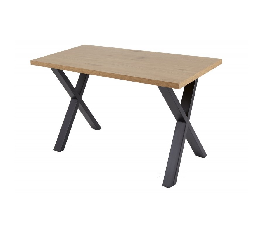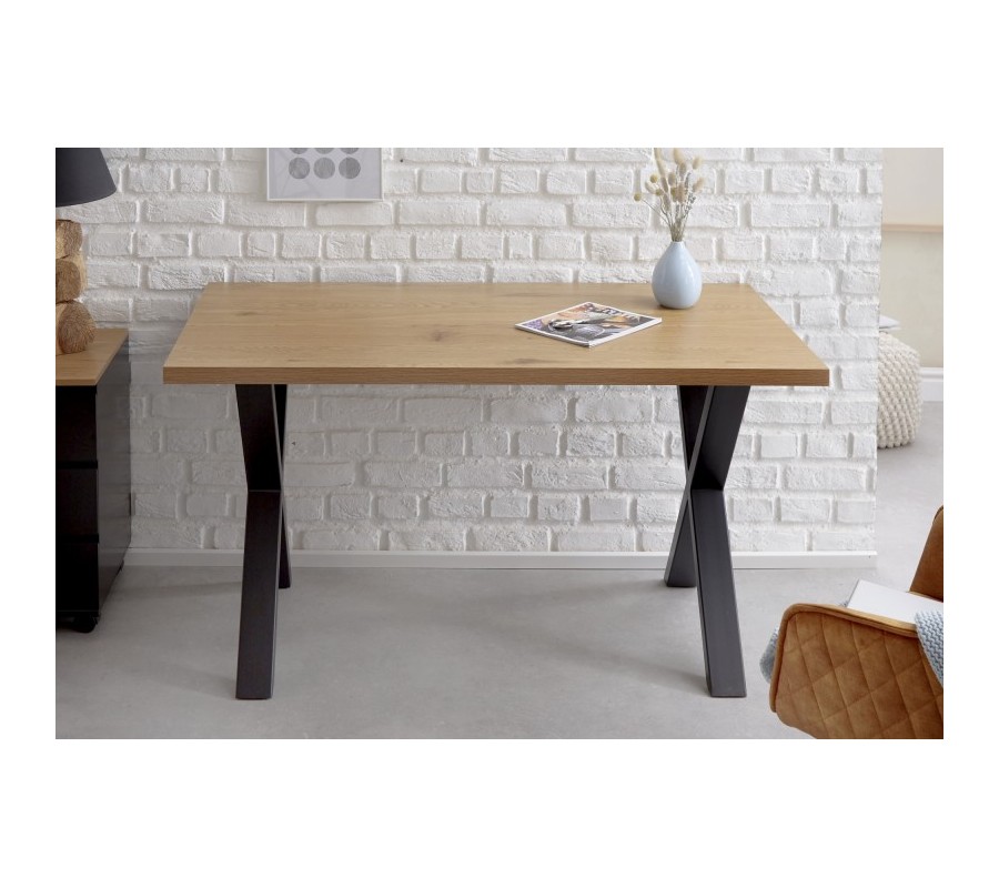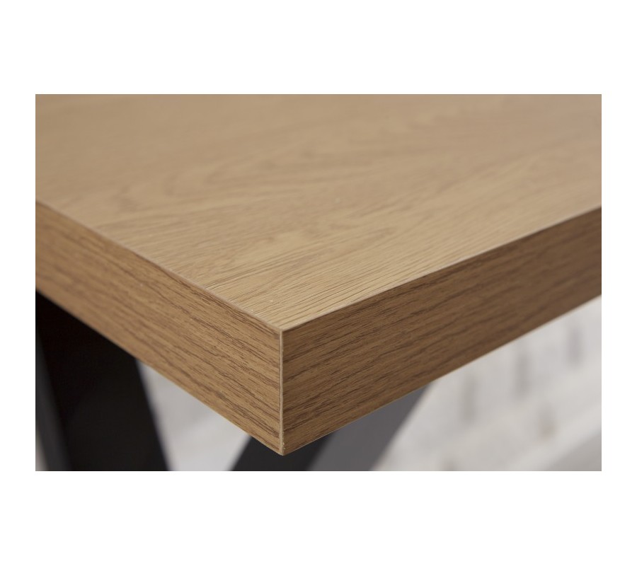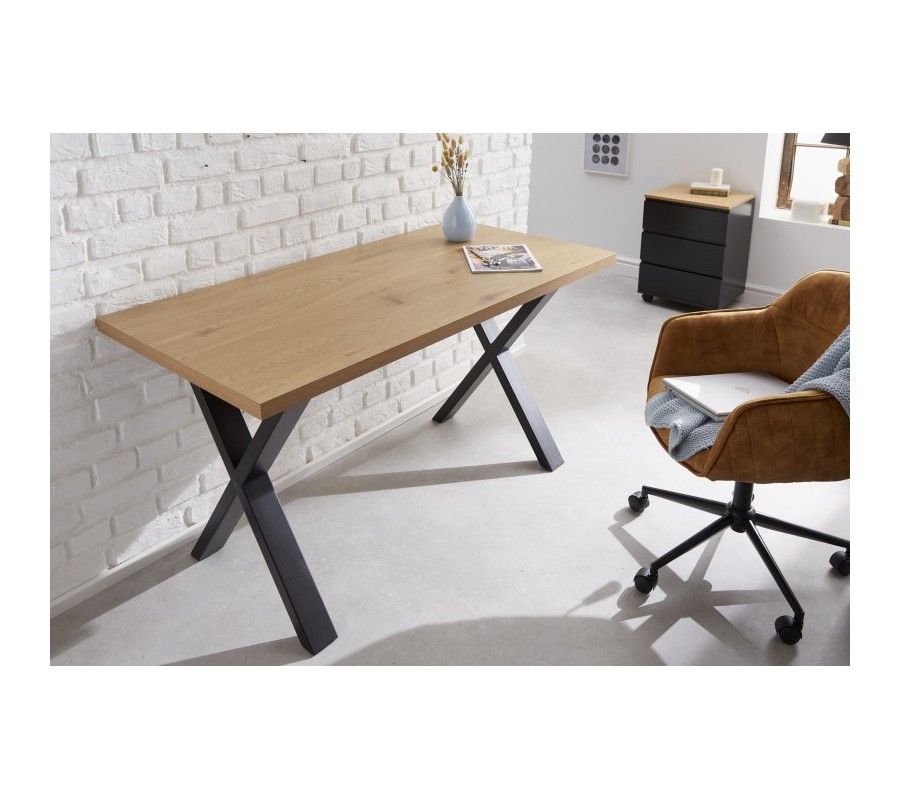 Moderný kancelársky stôl Steele Craft z rovnomennej kolekcie nábytku skvelo zapadne do industriálne ladených pracovní a kancelárskych priestorov. Povrchová drevená doska svetlohnedej farby je doplnená prekríženými čiernymi nohami, ktoré vytvárajú nadčasový industriálny vzhľad. Vďaka svojmu univerzálnemu vzhľadu stolík poľahky doplnítíe do rôznofarebne ladených priestorov. Pre dosiahnutie dokonalého industriálneho vzhľadu ho odporúčame umiestniť do moderných priestorov v kombinácii s ďalšími kovovými a drevenými prvkami. Odporúčame taktiež kombinácius ďalšími kúskami z kolekcie Steele Craft.