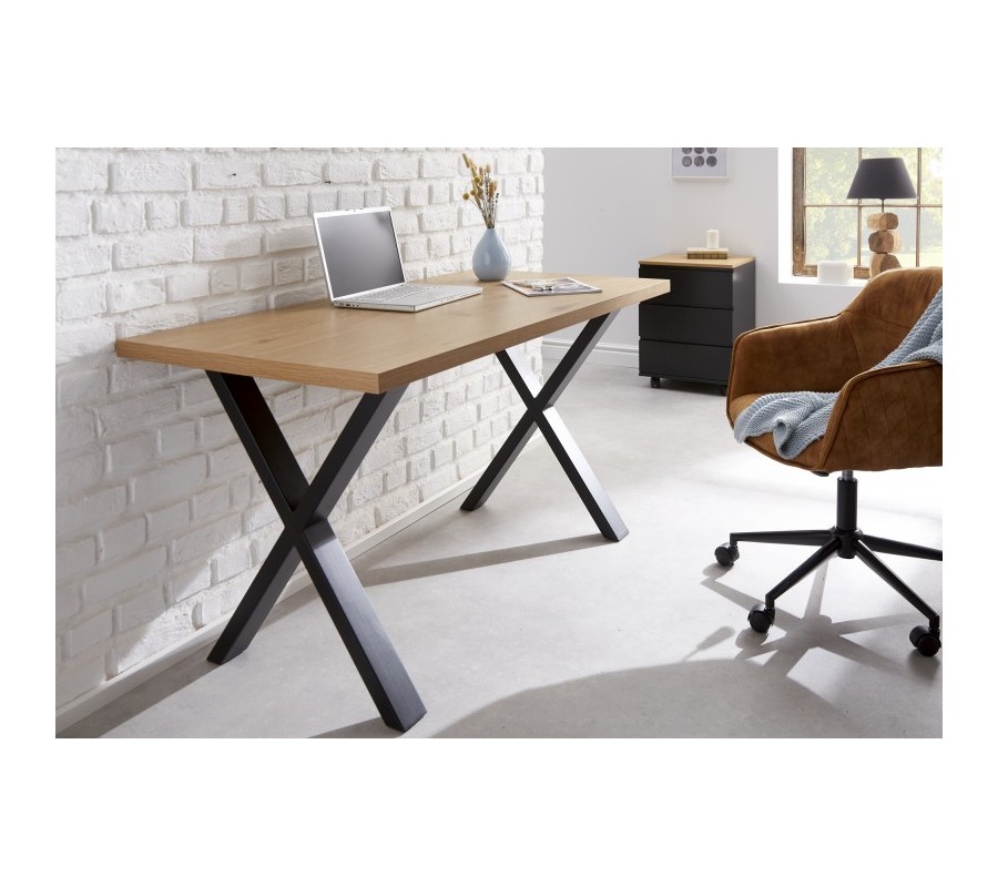 Industriálny kancelársky stôl Steele Craft z dreva s prekríženými čiernymi nohami z kovu 140cm