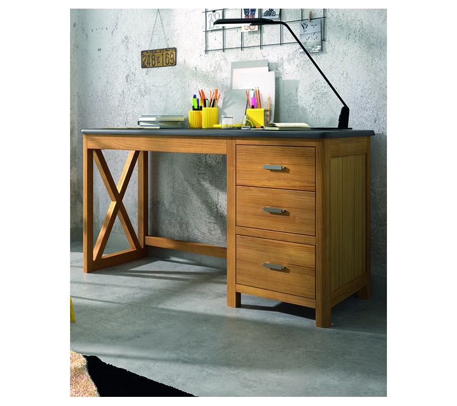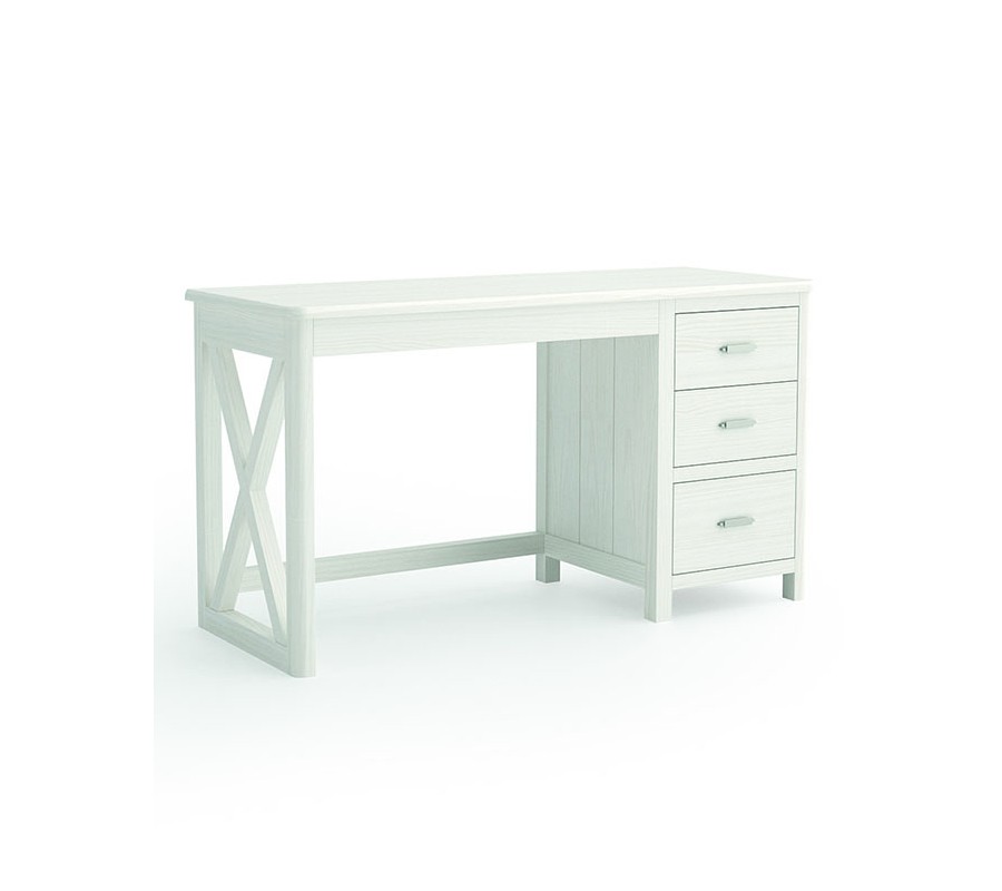 Luxusný písací stôl Cederna z našej jedinečnej kolekcie zaujme najmä milovníkov moderného štýlu vďaka minimalistickým tvarom a čistým líniám. Písací stôl je ručne vyrobený z ekologického dreva od dodávateľa s certifikátom obnovy lesného porastu. Písací stôl z kvalitného masívneho dreva disponuje úložnými priestormi na pravej strane v podobe dvoch menších zásuviek v hornej časti a jednou väčšou zásuvkou v dolnej časti. V zásuvkách si dobré miesto nájdu všetky vaše písacie potreby, zošity, či dôležité dokumenty. Dominantným prvkom je vystuženie rámu nožičiek v tvare X v ľavej časti písacieho stola. Na výber ponúkame množstvo farebných prevedení, ktoré si môžete prezrieť v priloženom vzorkovníku. Vybrať si možno taktiež farebný odtieň kovových rukovätí. Moderný písací stôl zaručene vynikne v pracovni, či v detskej izbe, kde prevládajú neutrálne farby. Miestnosť v ktorej sa písací stôl nachádza môžete oživiť farbnými bytovými doplnkami hodiacimi sa k farbe písaciemu stolu.