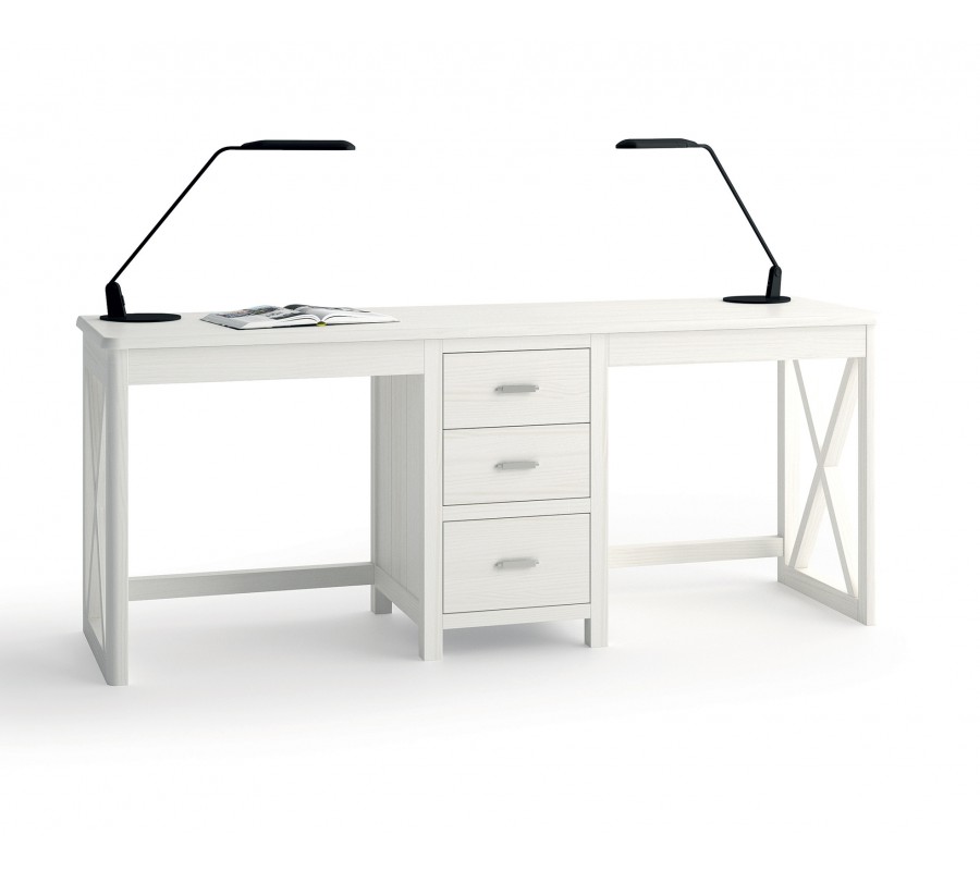 Moderný dvojitý písací stôl z kolekcie Cerdena je inšpirovaný romantickým talianskym ostrovom Sardínia. Masívny písací stôl Cerdena, inšpirovaný modernými trendami, disponuje mohutným prevedením ručnej výroby. Priame minimalistické línie spolu s oblými okrajmi tiahnucími sa až po nožičky písacieho stola Cerdena mu dodávajú minimalistický moderný nádych. Drevená vrchná doska písacieho stola Cerdena je zdobená jemným, vyrezávaným zdobením so zaoblenými rohmi. Dominantou masívneho písacieho stola Cerdena je jeho mohutný drevený rám, ktoré je kontrastne doplnený jemnou povrchovou úpravou a rukoväťami vo vintage štýle v dvoch farebných prevedeniach starozlatej a striebornej farby. Stredová skrinka s tromi zásuvkami a dve pracovné miesta dodávajú písaciemu stolu Cerdena praktickosť, ktorá v spojení s moderným prevedením vytvára nadčasový kúsok vhodný do moderných pracovní, či detských izieb. Farebné prevedenie písacieho stola Cerdena je možné vybrať podľa vzorkovníka dreva, ktorý nájdete aj v našom showroome.
