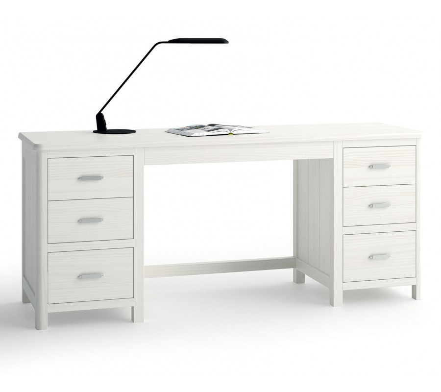 Luxusný masívny písací stôl z kolekcie Cerdena je inšpirovaný romantickým talianskym ostrovom Sardínia. Čisté minimalistické línie spolu s oblými okrajmi tiahnucími sa až po nožičky písacieho stola Cerdena mu dodávajú moderný nádych. Masívny písací stôl Cerdena, inšpirovaný modernými trendami, disponuje mohutným prevedením ručnej výroby. Drevená vrchná doska písacieho stola Cerdena je zdobená jemným, vyrezávaným zdobením so zaoblenými rohmi. Dominantou masívneho písacieho stola Cerdena je jeho mohutný drevený rám, ktoré je kontrastne doplnený jemnou povrchovou úpravou a rukoväťami v štýle vintage v dvoch farebných prevedeniach - starozlatej a striebornej farby. Praktické skrinky po okrajoch písacieho stolíka Cerdena s tromi zásuvkami a dostatkom úložného priestoru v spojení s moderným prevedením vytvárajú nadčasový kúsok vhodný do moderných pracovní, či detských izieb. Farebné prevedenie písacieho stola Cerdena je možné vybrať podľa vzorkovníka dreva, ktorý nájdete aj v našom showroome na Zámockej ulici 24.