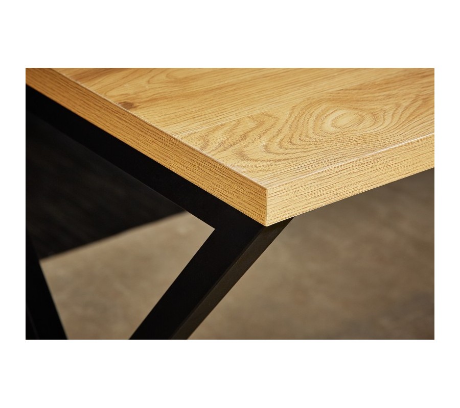 Industriálny písací stôl do kancelárie Westford s z masívneho dreva s tromi zásuvkami a kovovými prekríženými nohami 140cm