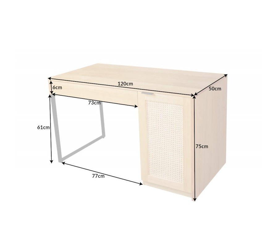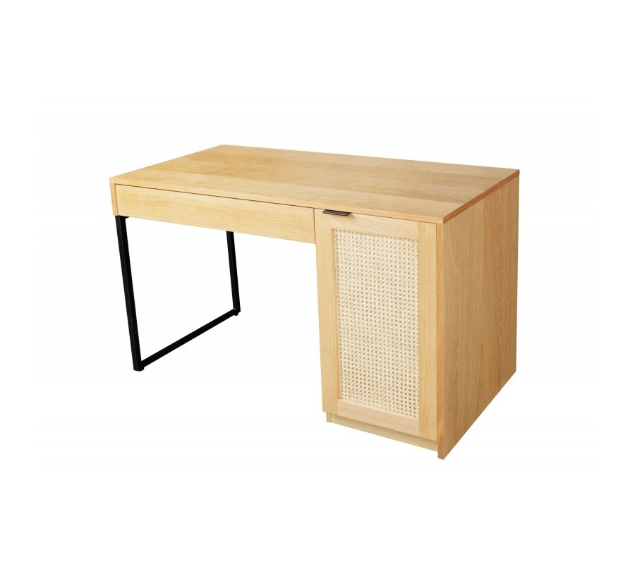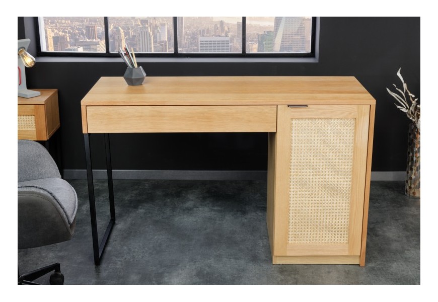 Vidiecky masívny písací stôl Vierata do kancelárie z dubového dreva so zásuvkou a dvierkami z ratanu 120cm