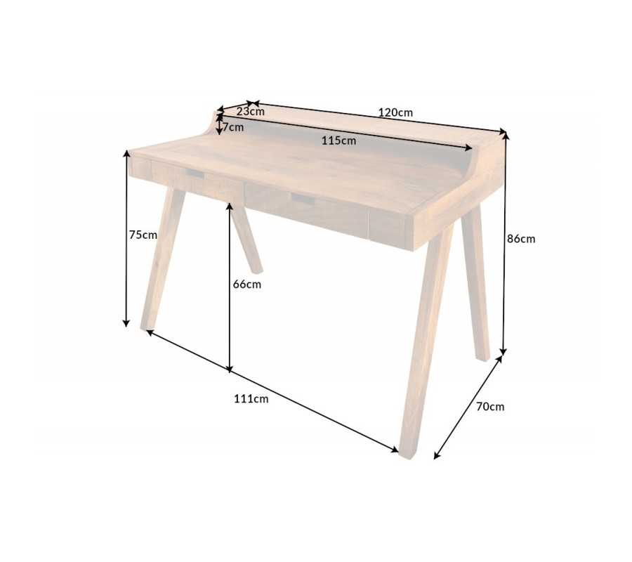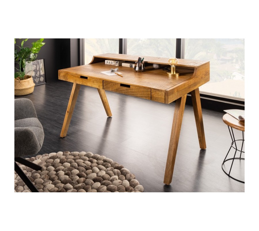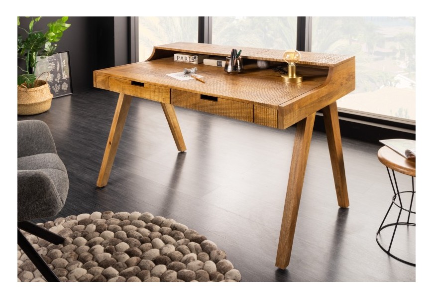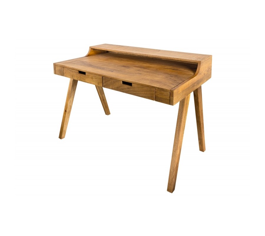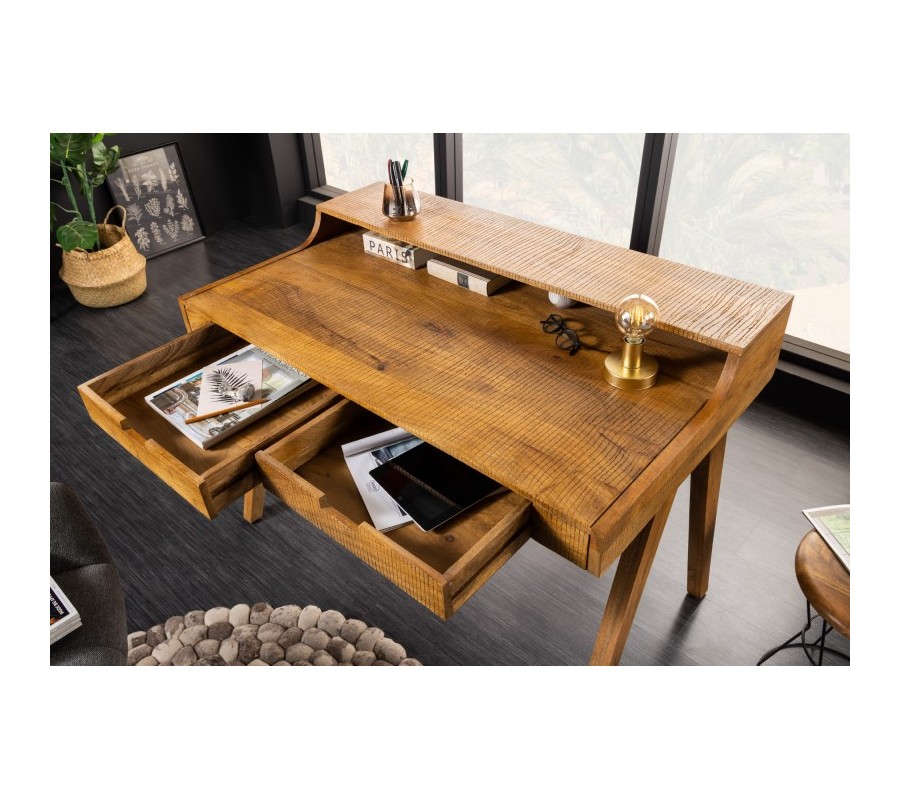 Retro masívny písací stôl Akácia z mangového hnedého dreva s lakovaným povrchom na šikmých nožičkách so zásuvkami 120cm
