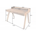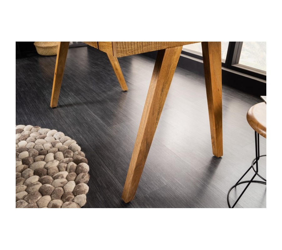 Štýlový písací stôl v masívnom vyhotovení Akácia dodáva interiéru vášho domova či kancelárskym biznis priestorom dokonalý retro náboj. Stane vašim obľúbeným spolupracovníkom a pomocníkom či už pri práci alebo voľnočasových kreatívnych ručných prácach. Písací stôl je vyrobený z kvalitného mangového dreva v prírodnej svetlej hnedej farbe a konštrukcia je postavená na štyroch šikmých nožičkách, ktoré umocňujú retro štýl stolíka. Povrch drevenej konštrukcie je typický svojou štruktúrovanosťou, ktorá decetne dopĺňa celkový retro dizajn. Okrem iného ponúka stôl Akácia aj praktické dve zásuvky s oblými výrezmi v strede na jednoduchú manipuláciu s ich otváraním. Polička umiestnená v zadnej časti vrchnej dosky stolu umožňuje umiestnenie písacích potrieb, dekorácií či kvetov v menších kvetináčoch. Jedná sa o ručne vyrábaný originálny nábytok, preto je každý kus jedinečný. Retro písací stôl Akácia sa bude výborne hodiť do kancelárií, domácich knižníc a pracovní či študentských izieb s retro nádychom ladených v neutrálnych zemitých farbách doplnených klasickou čiernou.