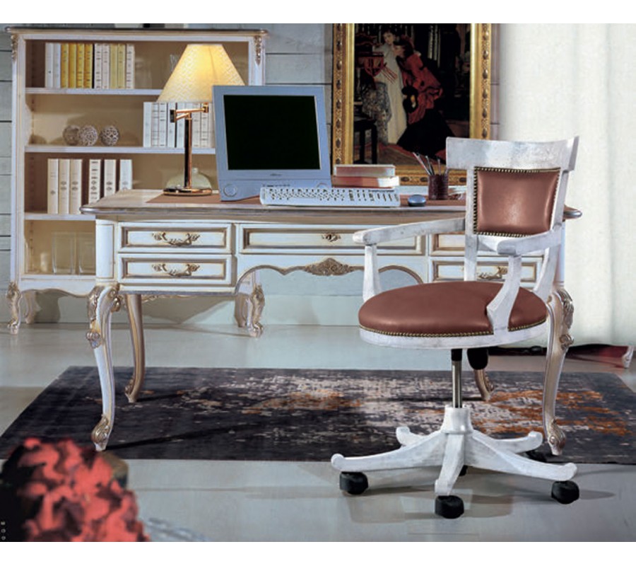 Luxusný písací stôl z masívu vyniká svojím bohatým počtom zásuviek a detailným spracovaním. S piatimi zásuvkami, z ktorých stredná je najväčšia a vybavená zámkom pre dodatočné bezpečie, tento stôl ponúka vynikajúce úložné riešenia pre všetky pracovné potreby. Má výrazný ručne vyrezávaný dekor.