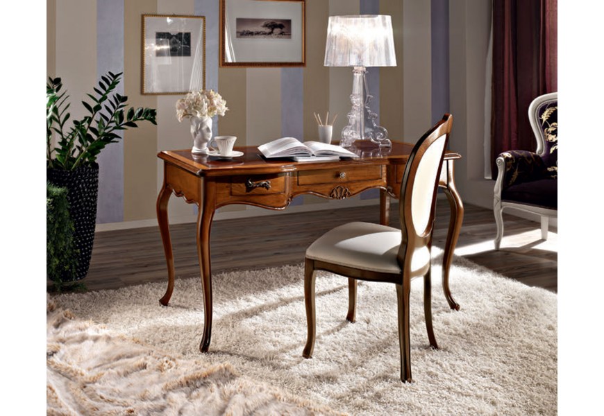 Vďaka svojmu dizajnu od talianskeho výrobcu klasického a barokového nábytku a použitiu kvalitných materiálov je tento pracovný stôl nielen funkčným, ale aj dekoratívnym kúskom nábytku, ktorý prinesie do každého interiéru pocit tepla a tradičnej krásy. Jeho robustná konštrukcia z masívu a detailne prepracované prvky robia z neho ideálnu voľbu pre tých, ktorí hľadajú spojenie praktickosti s luxusným a rustikálnym štýlom.