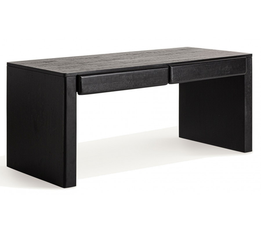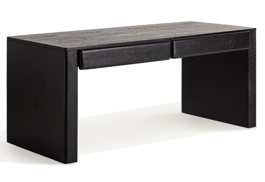 Luxusný moderný čierny písací stôl Alaric s dvomi zásuvkami z masívneho mangového dreva 180 cm
