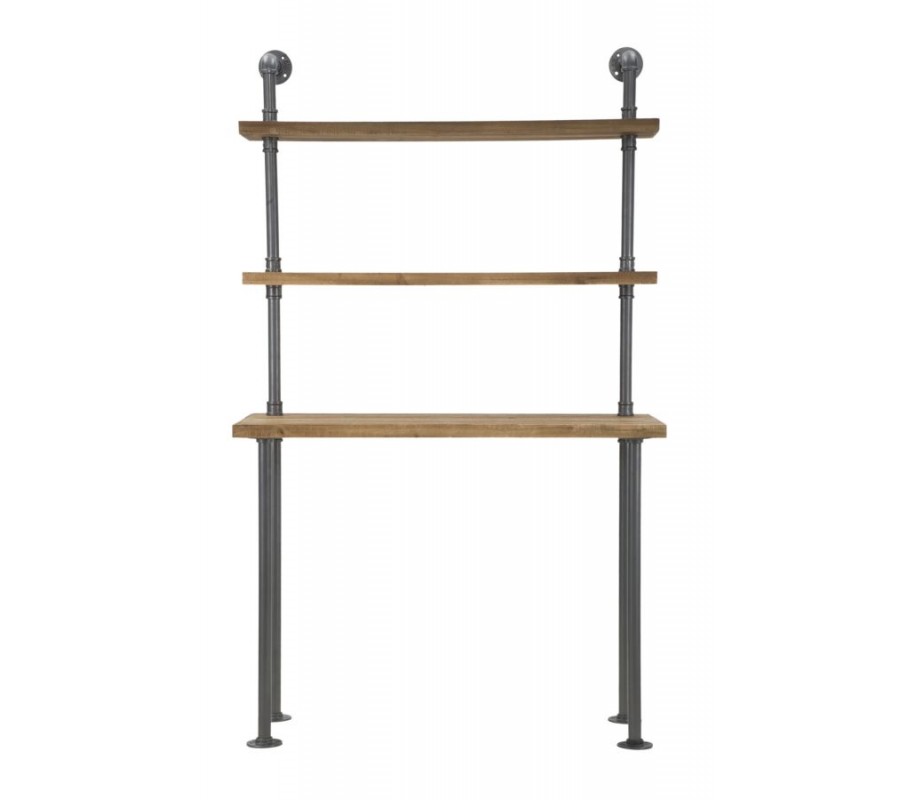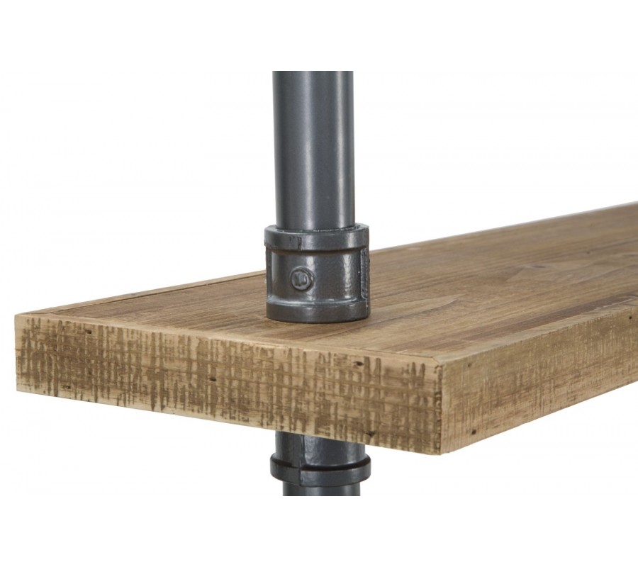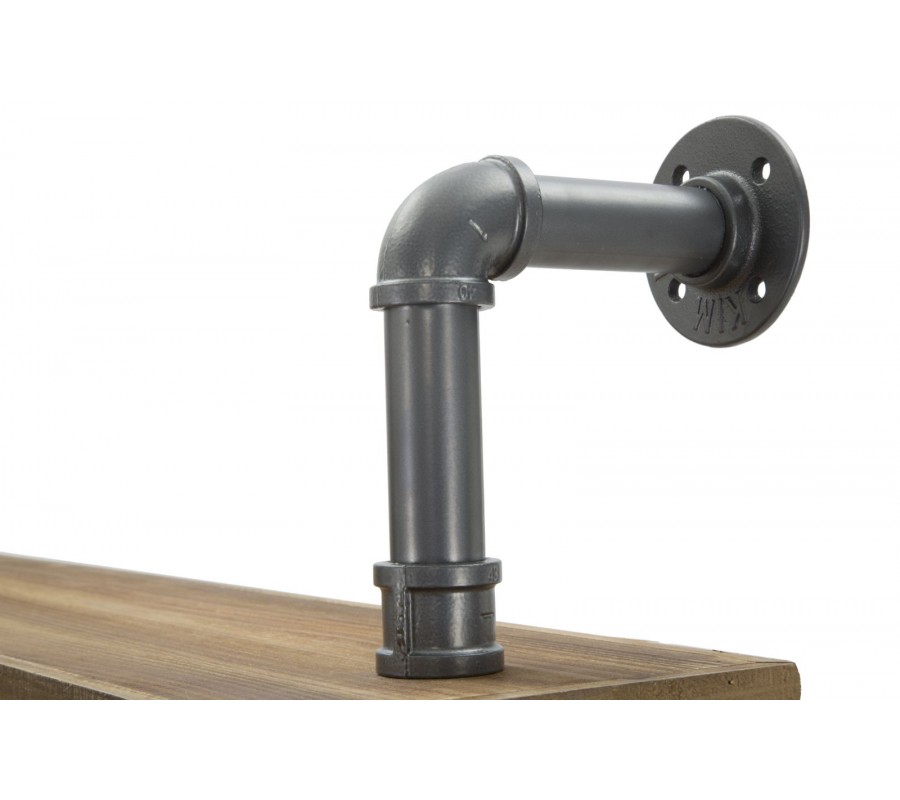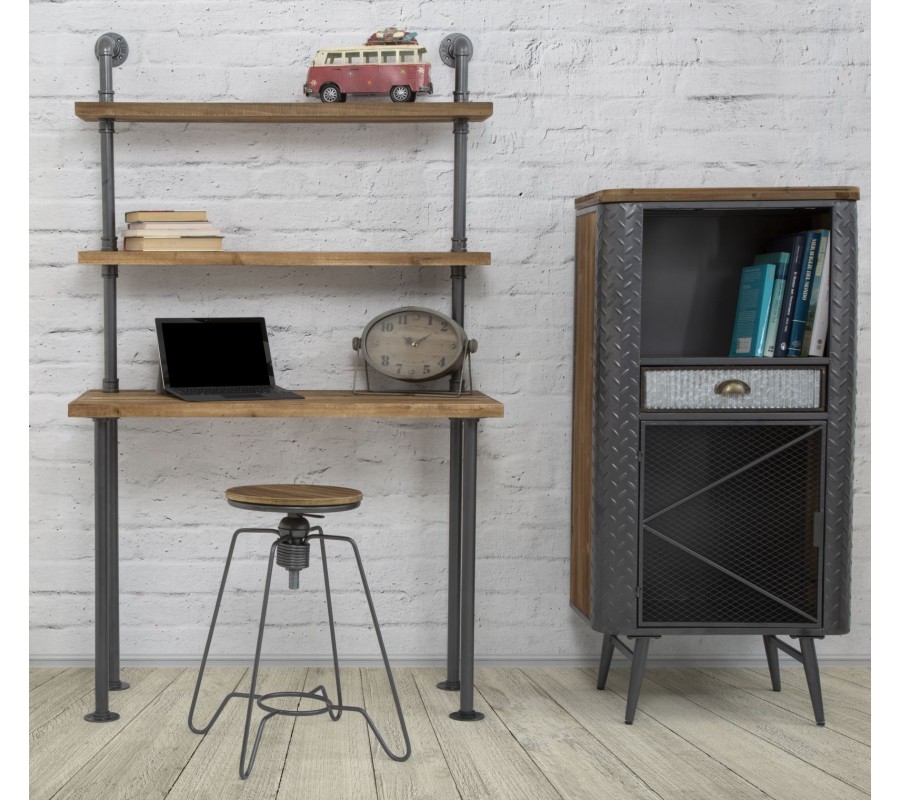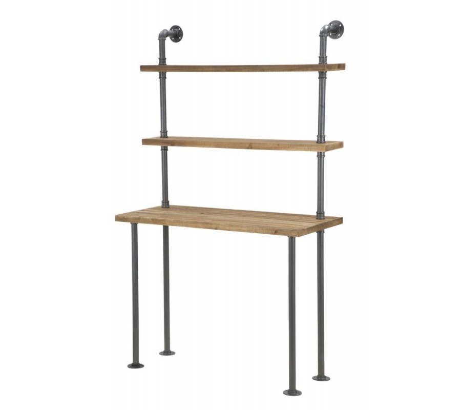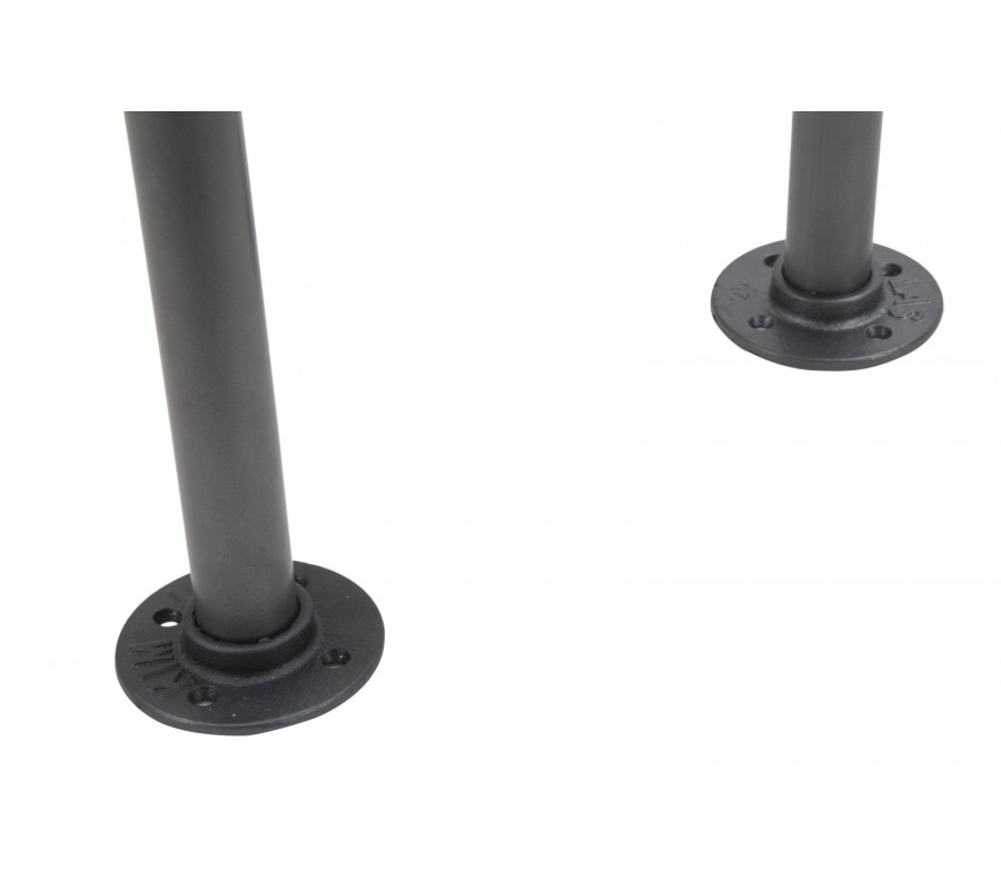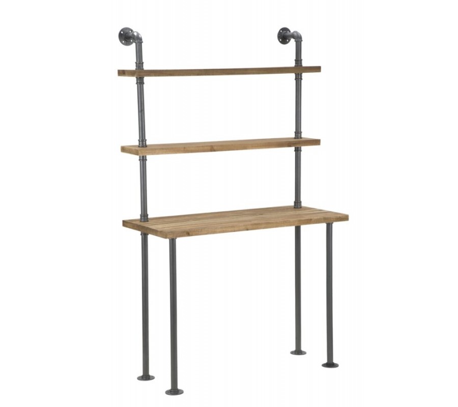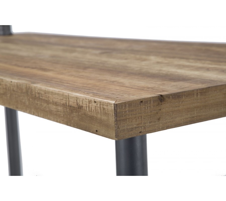 Písací stôl s industriálnym nádychom vyniká svojím minimalistickým dizajnom a praktickým prevedením. Jeho konštrukcia pozostáva z kovových tyčí v tmavosivej farbe, ktoré dizajnovo pripomínajú vodovodné potrubie, čím dodávajú stolu charakter typický pre industriálne priestory.