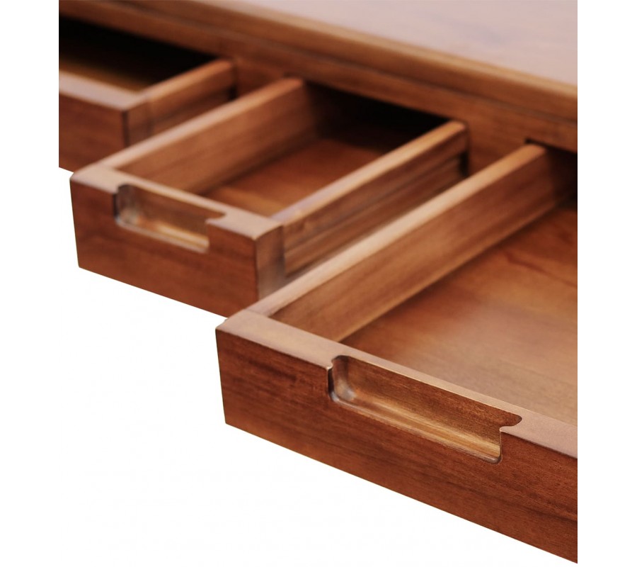 Písací stôl je vyrobený z masívneho mahagónového dreva, ktoré prináša do moderného dizajnu dotyk koloniálneho luxusu. Táto exotická drevina je vyhľadávaná vďaka svojej bohatej červenohnedej farbe a tiež vďaka vysokej tvrdosti a odolnosti. Nábytok je tak kvalitný a vydrží vo výbornom stave po dlhé roky.