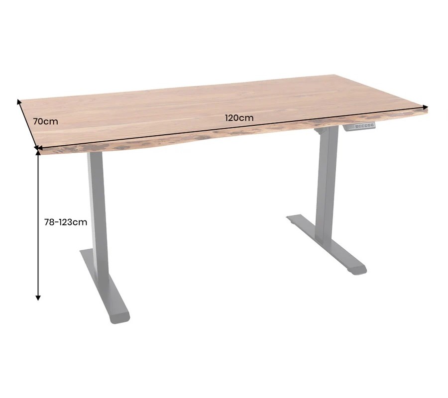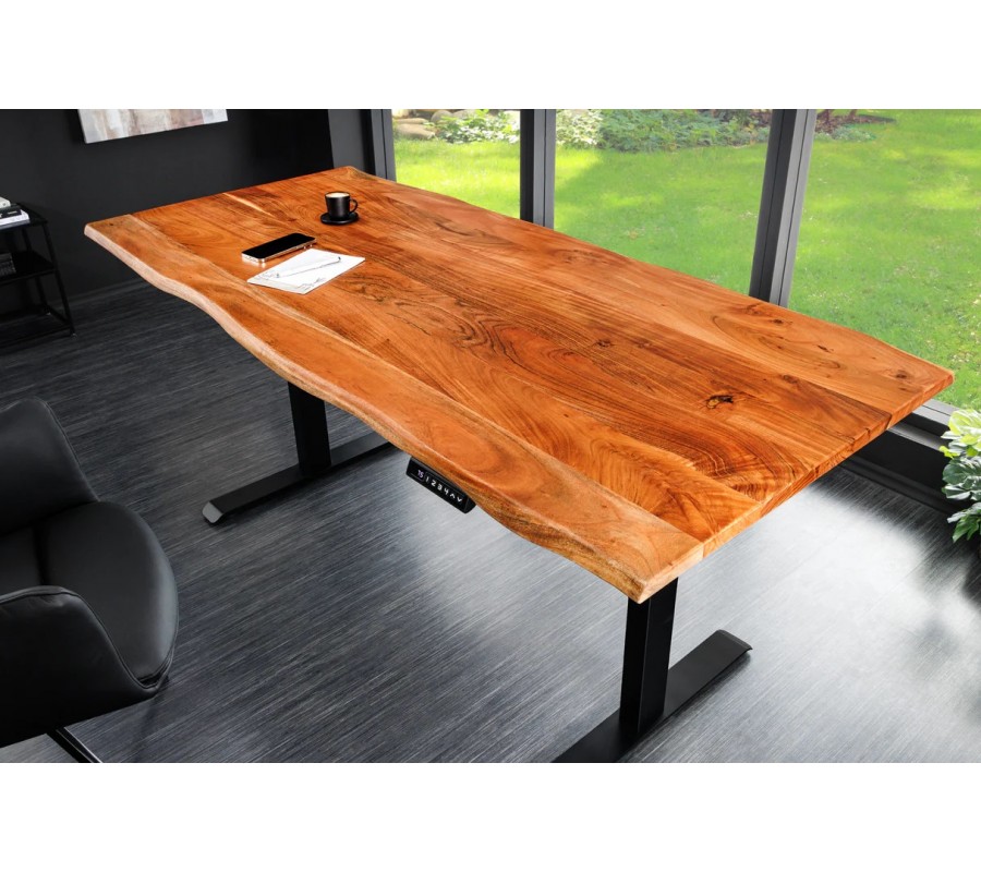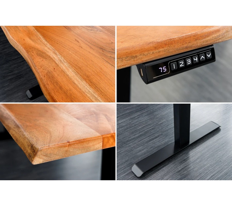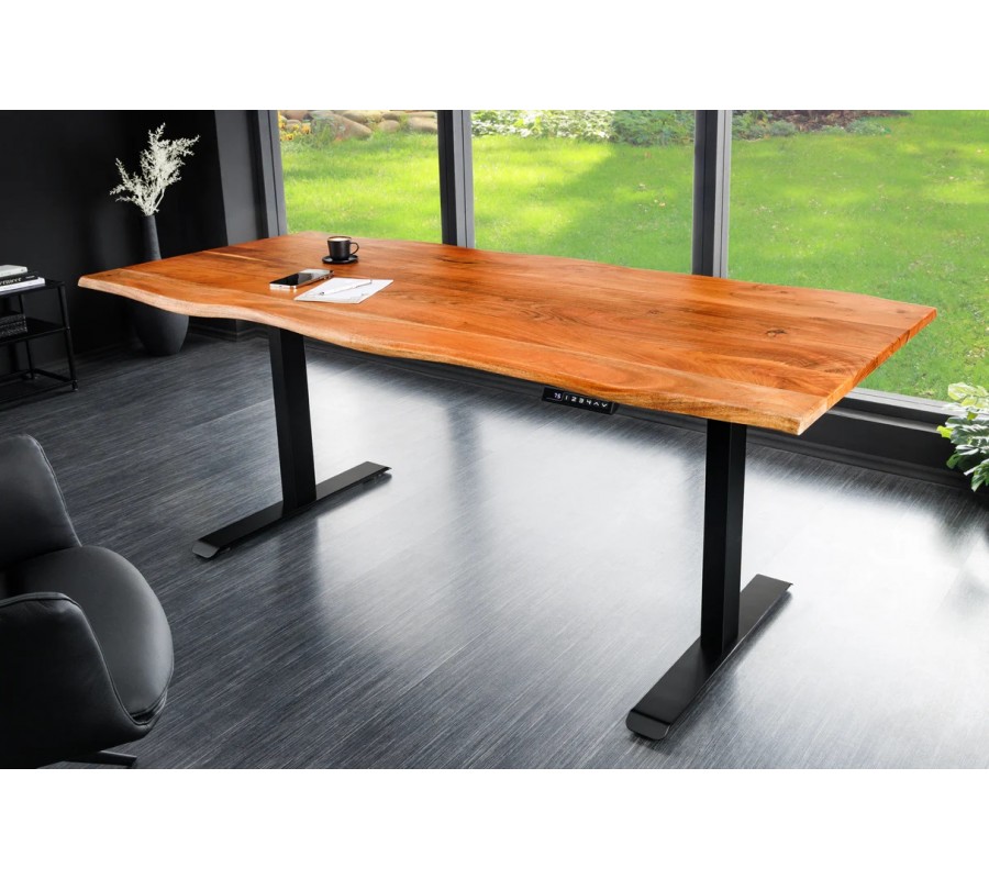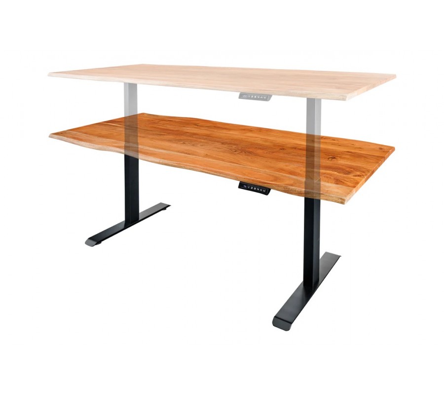 Moderný masívny výškovo nastaviteľný písací stôl Mammut s hnedou akáciovou vrchnou doskou a čiernou podstavou 120 cm