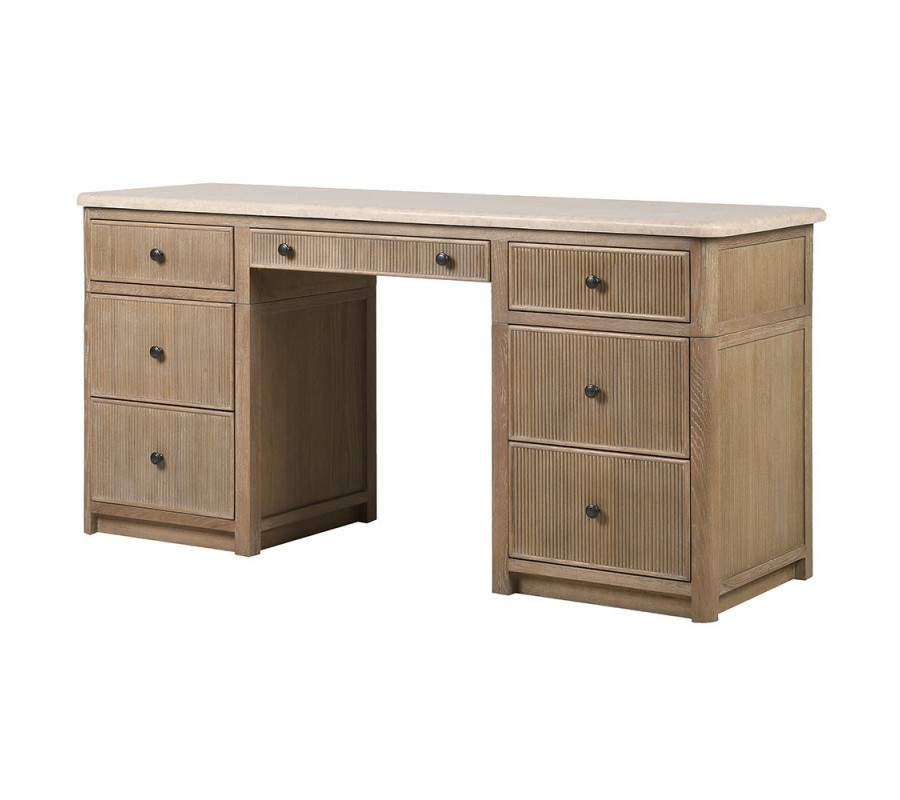 Luxusný vidiecky písací stôl Veron z dubového dreva s béžovou mramorovou doskou a ôsmimi zásuvkami 160 cm