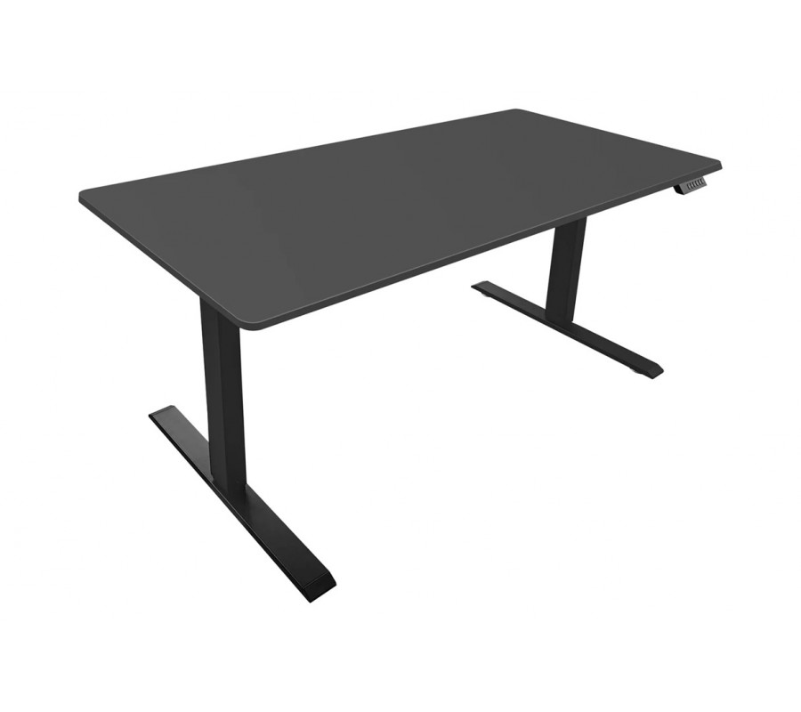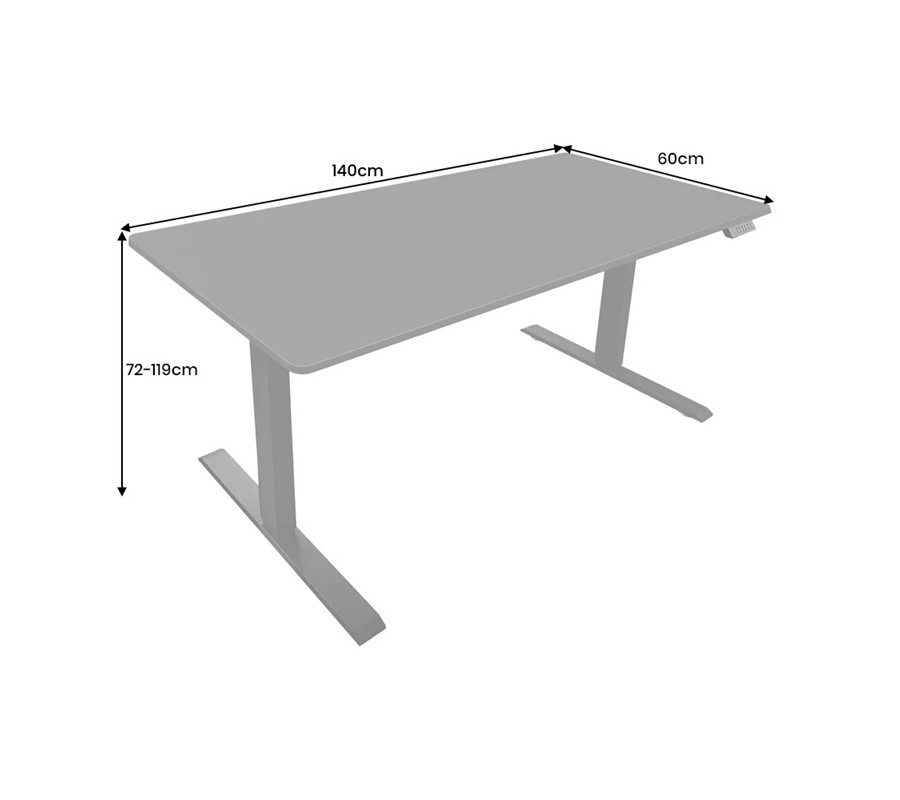 Stôl má minimalistický dizajn, s obdĺžnikovou vrchnou doskou s elegantne zaoblenými rohmi a dvomi hranatými nohami, ukončenými v spodnej časti dlhou lineárnou podstavou. Na pravej strane je pod vrchnou doskou diskrétne umiestnený ovládací panel elektrického výškového nastavenia. Rozmedzie od 72 cm do 119 cm umožňuje pohodlnú prácu v sede aj v stoji.