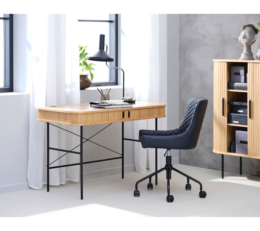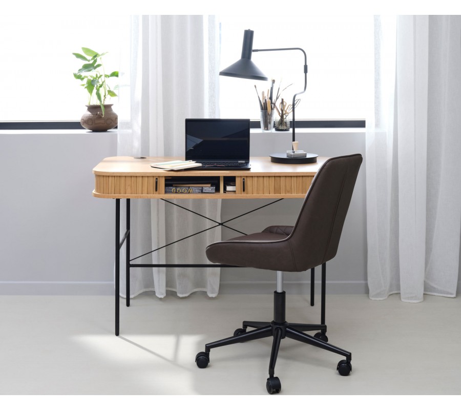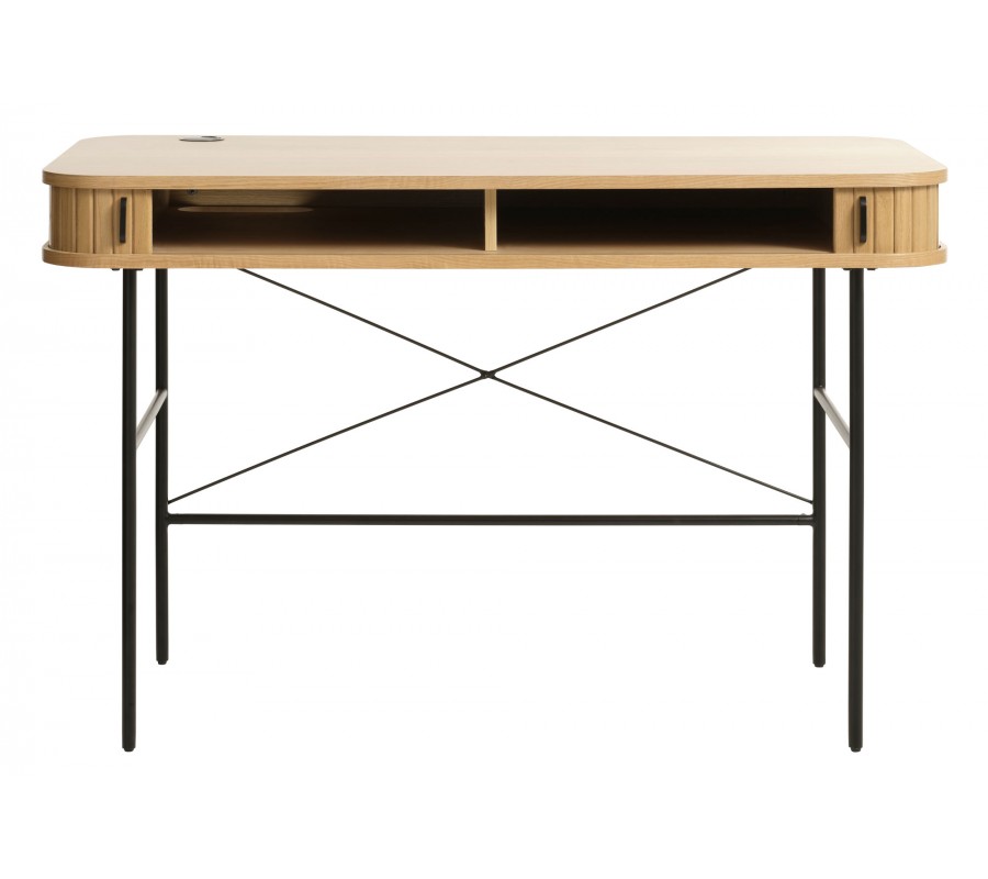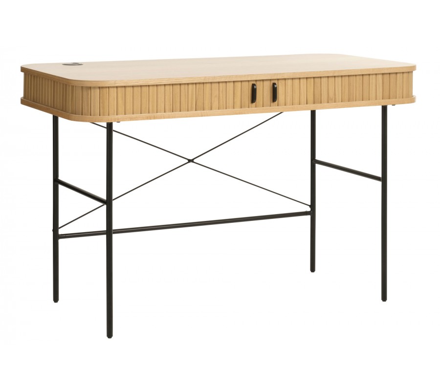 Škandinávsky písací stôl Bornholm s úložným priestorom v svetlom hnedom dubovom prevedení s čiernymi nohami 120 cm