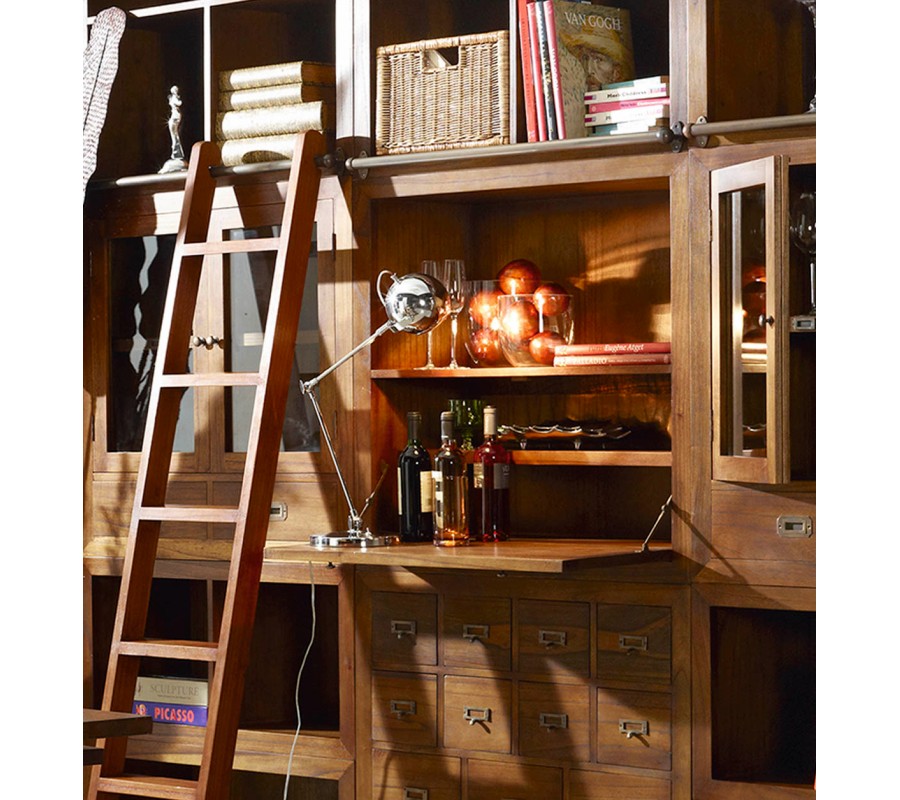 Nábytok má mohutné siluety a dominujú v ňom striktné rovné línie, pravé uhly a hladké povrchy. Úchytky sú vyrobené z bronzu, ktorý korešponduje s odtieňmi dreva a dodáva nábytku luxusný vzhľad. Na niektorých zásuvkách a policiach sú tiež umiestnené úchytky na menovku, pôsobiace šarmantným vintage dojmom.