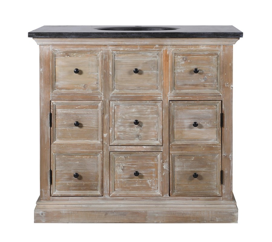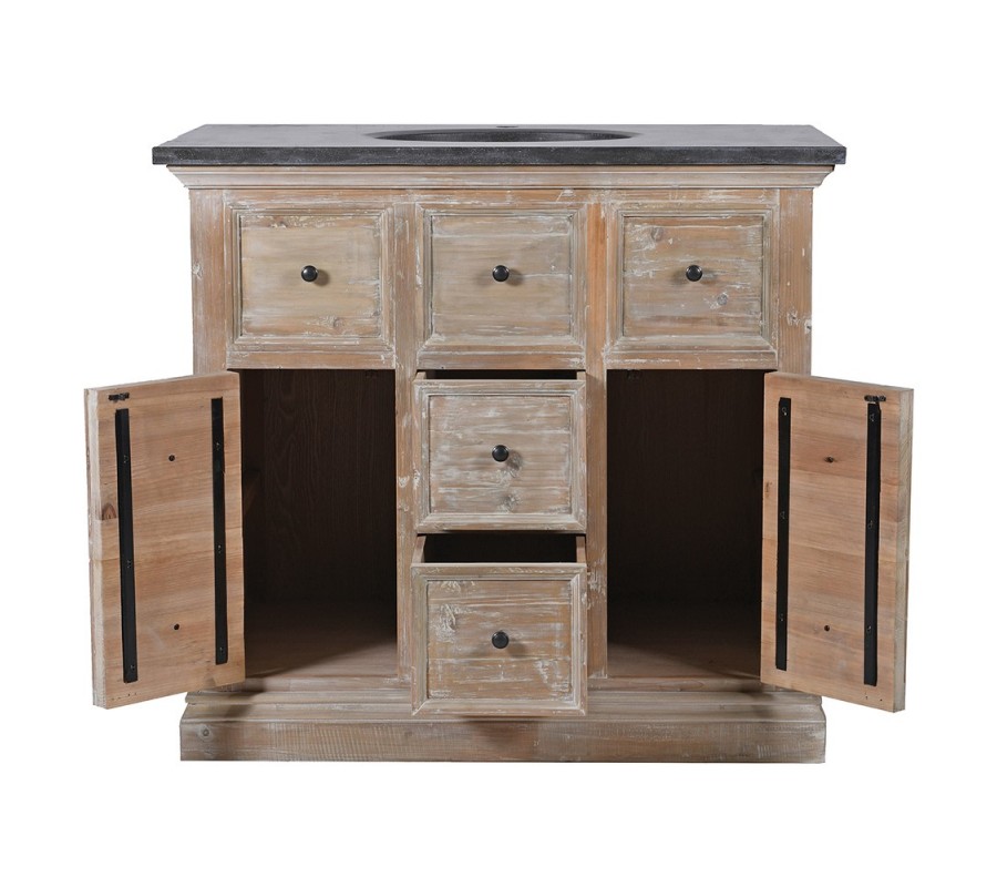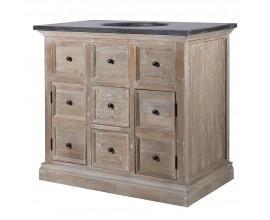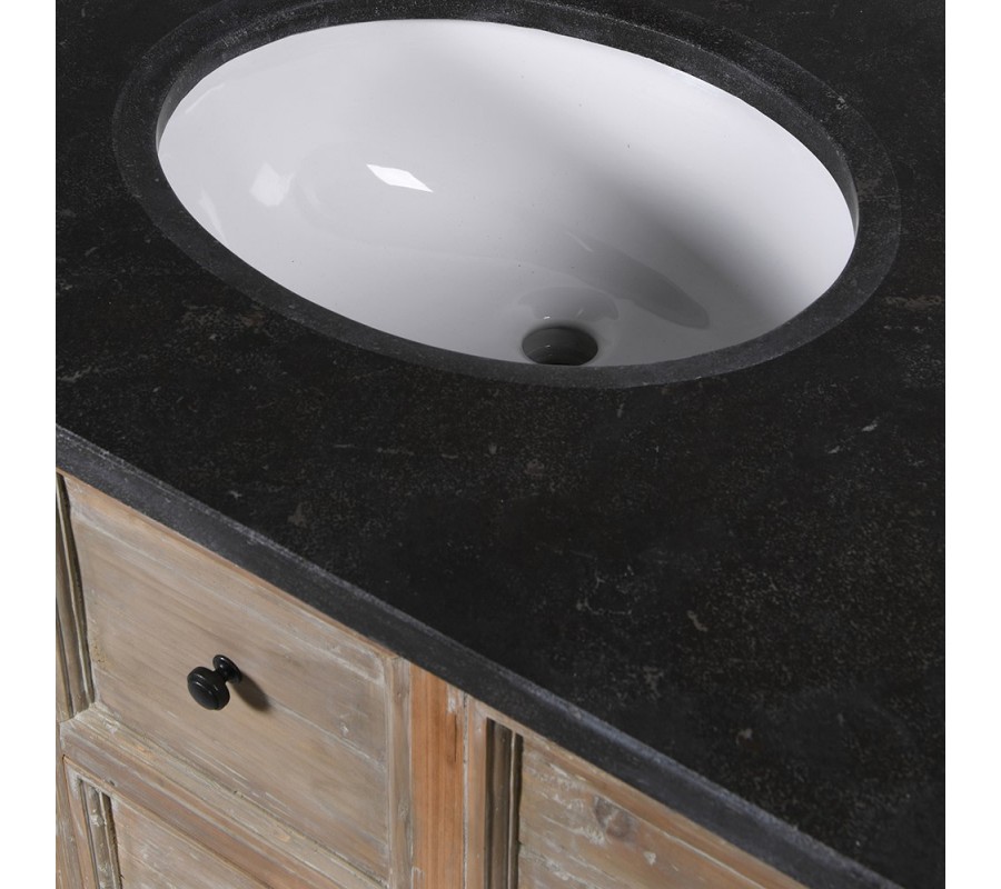 Masívna vidiecka drevená umývadlova skrinka Polly s dvierkami a čiernym mramorom 100cm