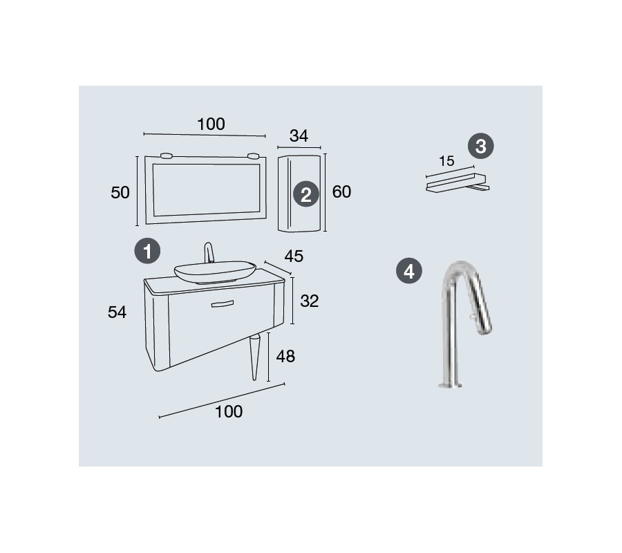 Komplet obsahuje kúpeľnový set (skrinka pod umývadlo + umývadlo + zrkadlo) a ďaľšie časti zostavy, Pre vloženie do košíka či ďalšie informácie kliknite na odkazy pod obrázkami. Povrch skrinky je vysokoleštený lak so zaoblenými hranami. Farbu špecifikujte v poznámke pri dokončení objedenávky.