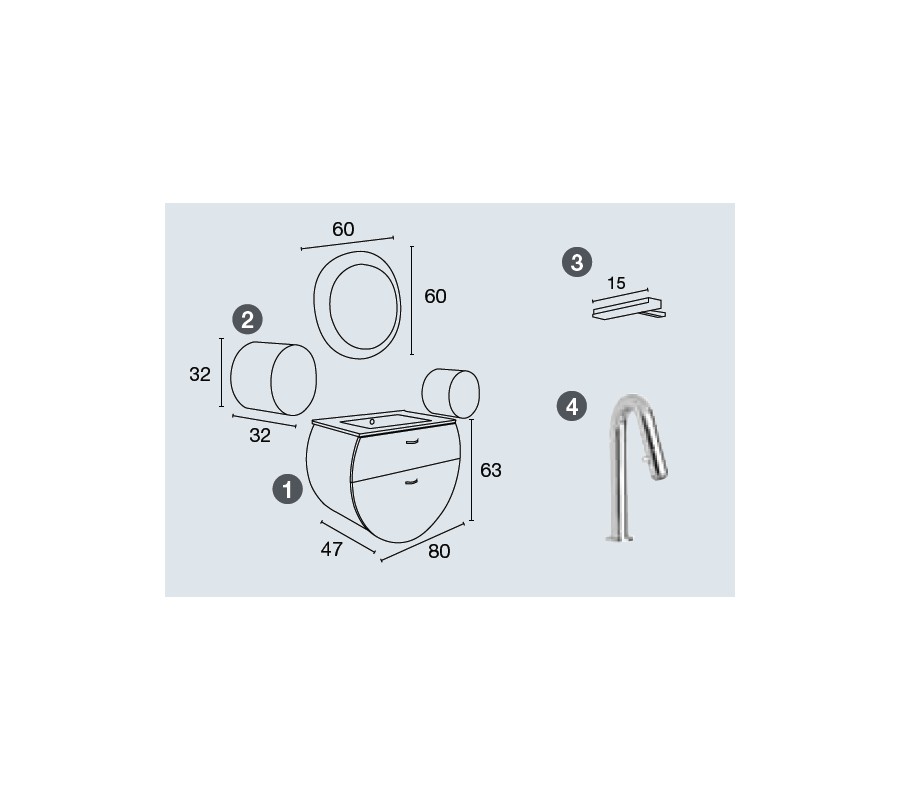 Komplet obsahuje kúpeľnový set (skrinka pod umývadlo + umývadlo + zrkadlo) a ďaľšie časti zostavy, Pre vloženie do košíka či ďalšie informácie kliknite na odkazy pod obrázkami. Farbu špecifikujte do poznámky pri dokončení objednávky.