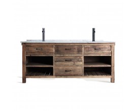 Luxusná rustikálna masívna hnedá kúpeľňová skrinka Amalfia s mramorovou sivou doskou a dvomi umývadlami 179 cm